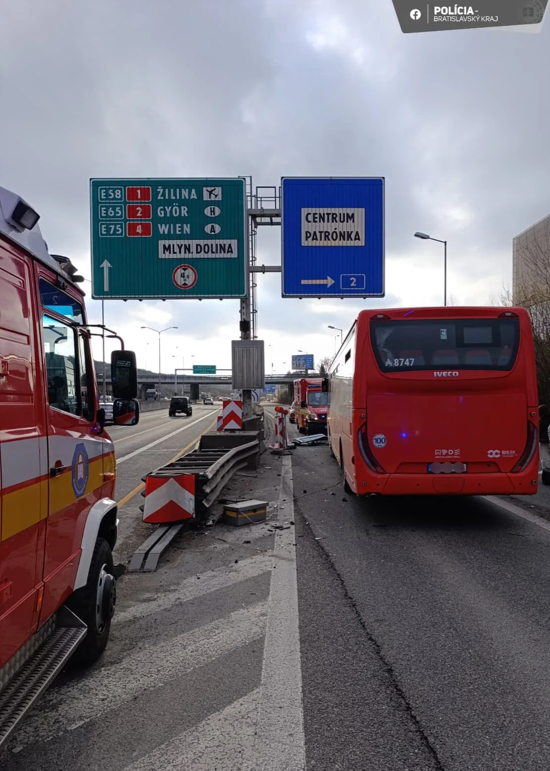 „Aktuálne bratislavskí dopravní policajti vykonávajú potrebné úkony spojené s udalosťou v cestnej premávke na diaľnici D2, 58 km v smere do Bratislavy, ku ktorej došlo krátko pred 07.00 h. v úseku pri zjazde na Patrónku,“ ozrejmila bratislavská krajská polícia na sociálnej sieti.
