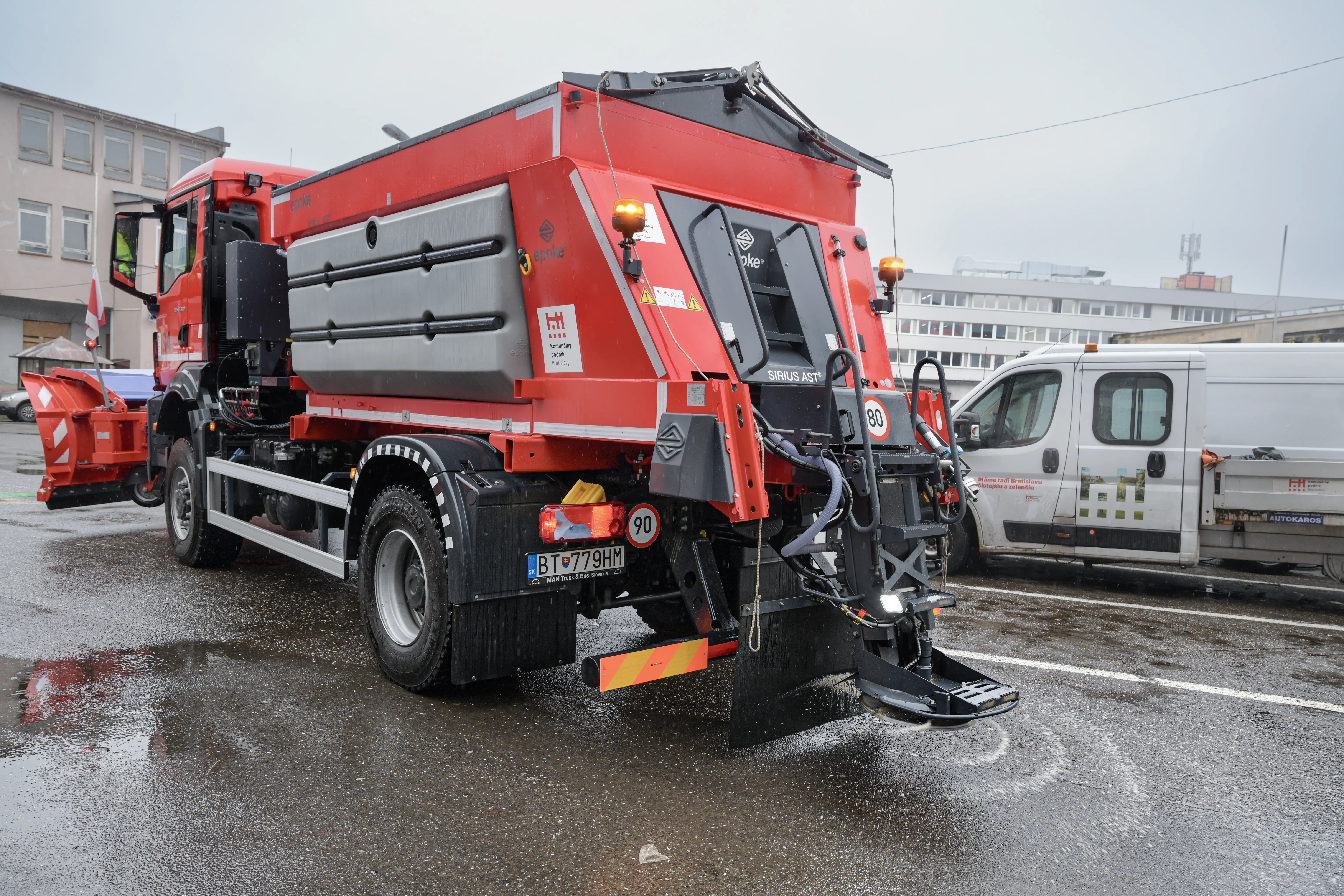 Vozidlo na posypovanie ciest v Bratislave. Zdroj: TASR/Pavel Neubauer