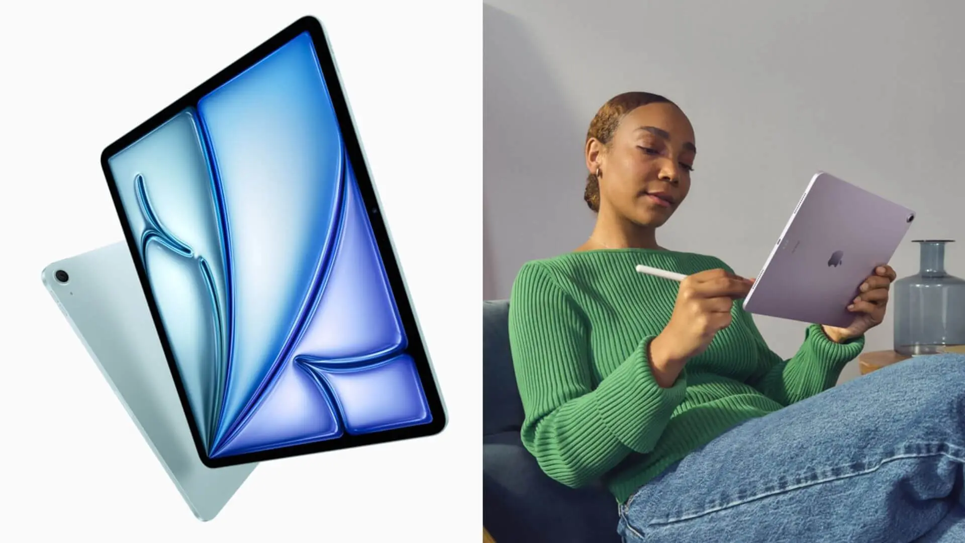 Medzitým iPad Air po prvýkrát prichádza v rovnakých dvoch veľkostiach: 11-palcový (okolo 599 $; u nás 699 eur) a 13-palcový (799 $; u nás 949 eur) dizajn. Väčšia veľkosť, inšpirovaná iPadom Pro s väčšou obrazovkou, má o 30 % viac obrazovky ako 11-palcový displej.