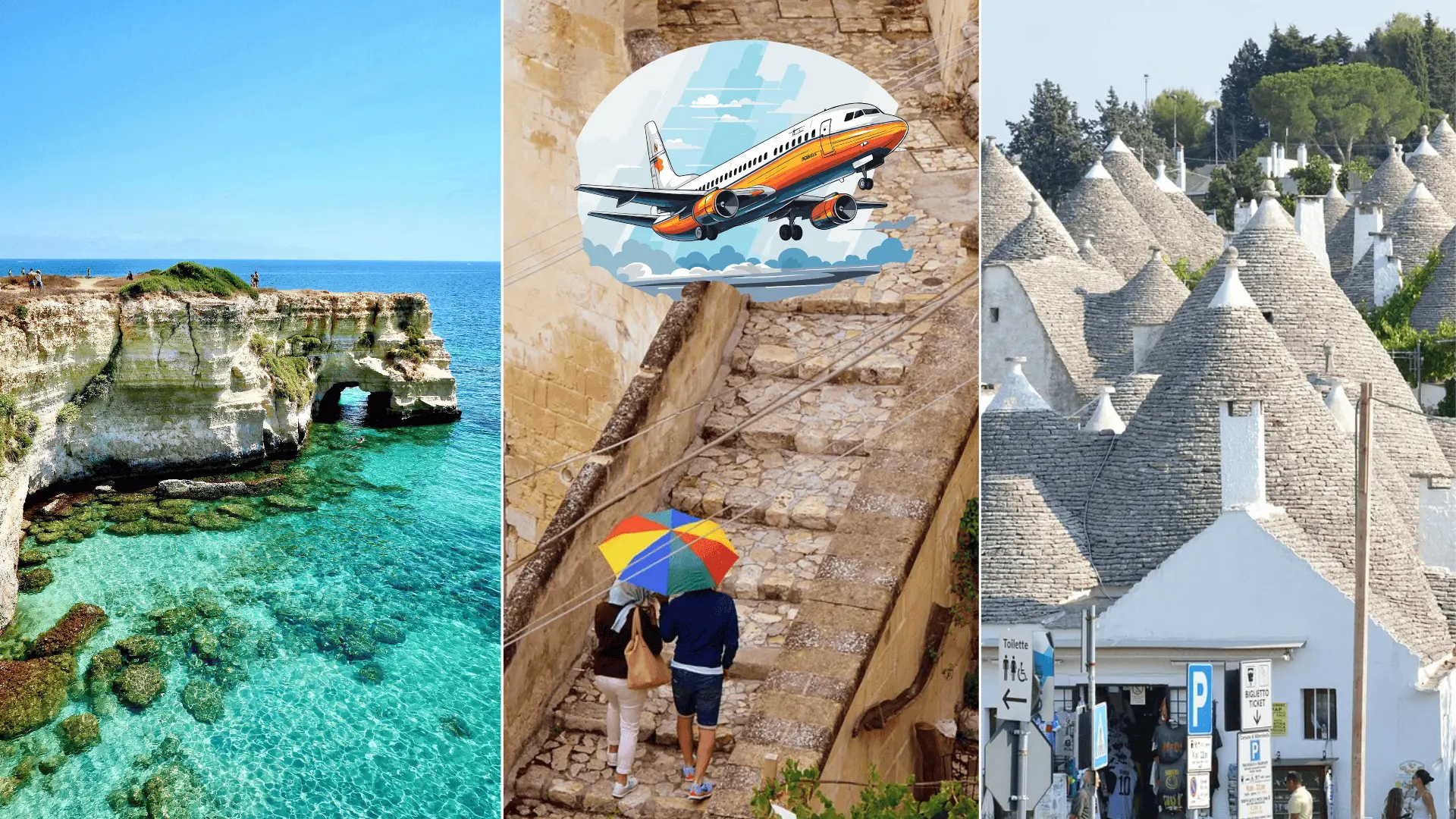 - Mestečko Alberobello: Mesto zapísané na zozname UNESCO, známe unikátnymi kamennými domčekmi s kužeľovitými strechami, nazývanými „trulli“.