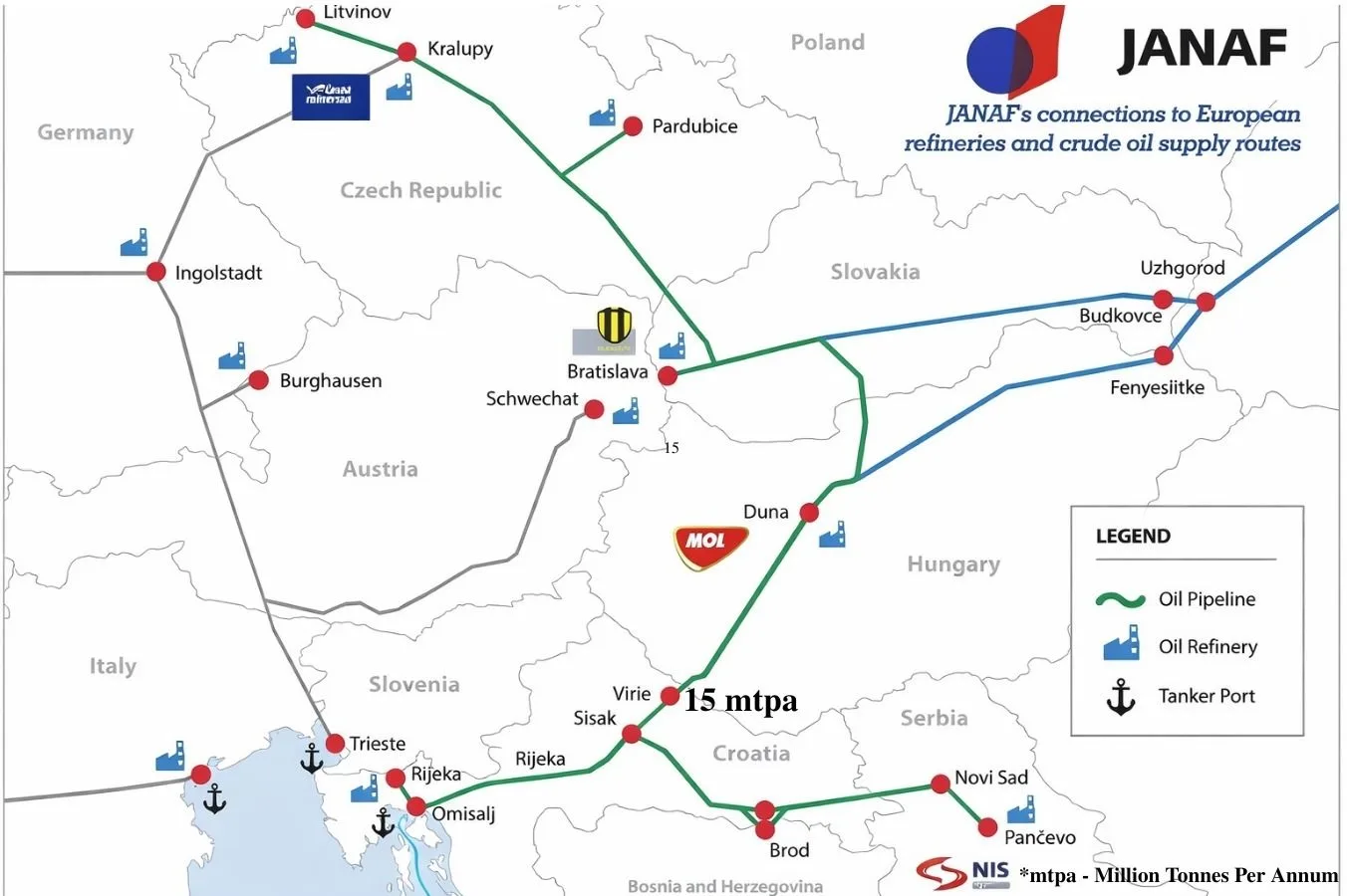 Nová trasa by viedla cez Chorvátsko. Maďarsko a Slovensko nežiadali o alternatívnu ropu, ale o alternatívnu prepravnú trasu pre rovnaký ruský typ ropy, tentokrát však cez ropovod Adria (Janaf).
