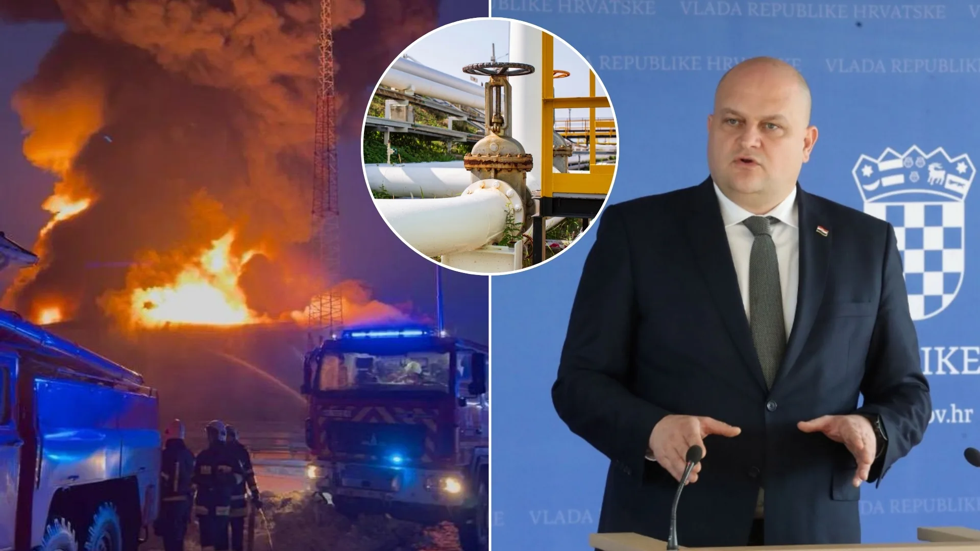 Chorvátsky minister hospodárstva Ante Šušnjar. Na snímke vľavo poškodený ropovod Družba po ruskom útoku 27.1.2026. Zdroj: Facebook/Ante Šušnjar , X/@andrii_sybiha, canva