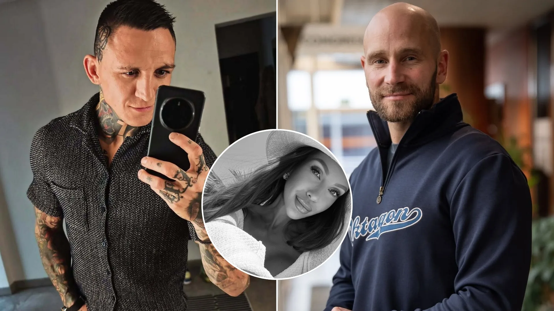 MMA zápasník Gábor Boráros, vpravo spolumajiteľ organizácie Pavol Neruda. V krúžku zosnulá expartnerka Monika Jákliová (†31). Foto: Instagram/boraros_gabor , Instagram/pavolneruda , Facebook/Mónika Jákliová