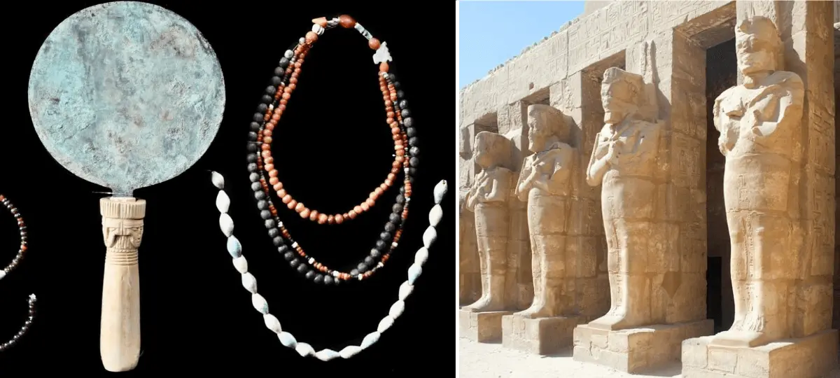 „Na jednom zo zrkadiel sa našla lotiformná rukoväť, na druhom je pomerne vzácny dizajn štvortvárovej Hathor (jedna z najstarších bohýň Egypta, pozn. red.), ktorý ju predstavuje ako ženu so strohými črtami,“ hovorí Dr. Elena Pischikova, ktorá viedla výkop, vo svojom vyhlásení.
