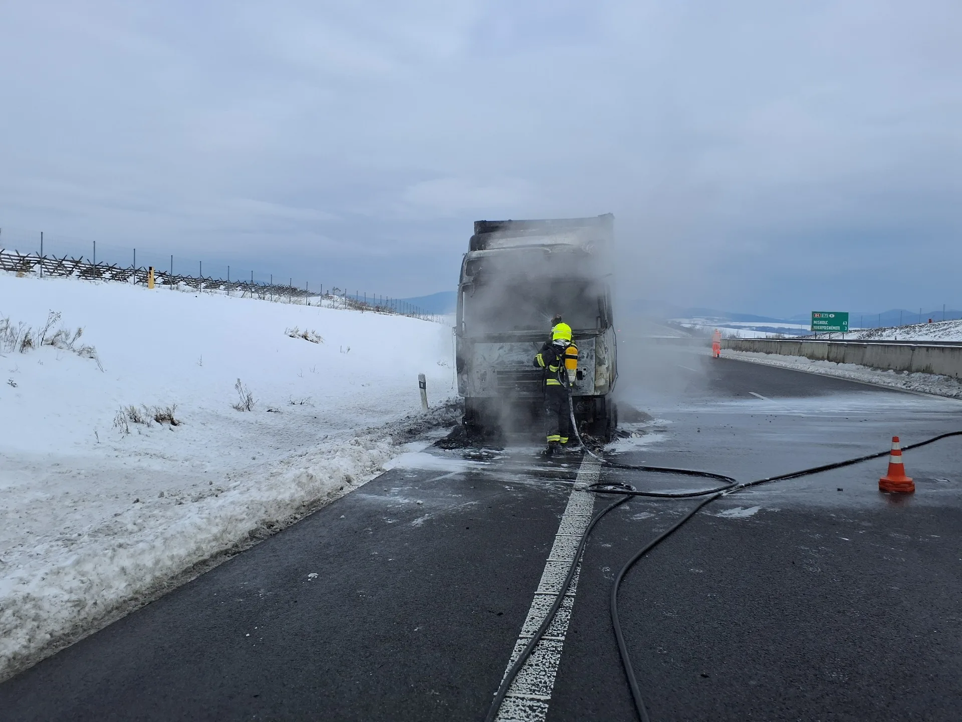 Rýchlostná cesta R4 medzi Košicami a Maďarskom je pre požiar kamióna uzavretá. Na mieste zasahujú hasiči.