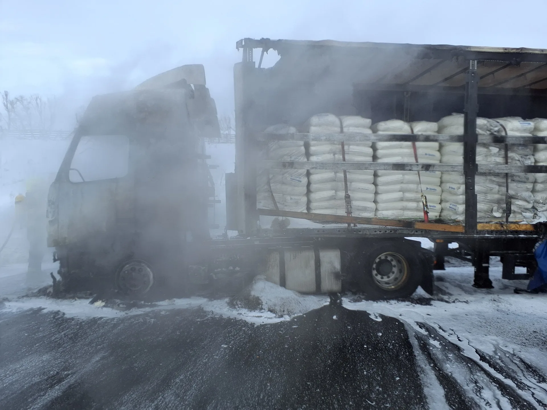 Niekoľko jednotiek hasičov zasahuje pri požiari kamiónu, ktorý je plne naložený plastovým granulátom. Plamene vypukli v stredu (7. 1.) popoludní na rýchlostnej ceste R4 od Košíc – časť Šebastovce smer Milhosť.