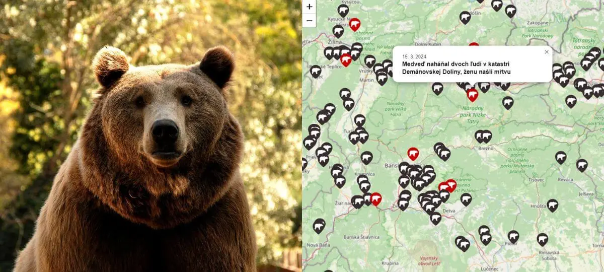 Z tohto dôvodu vznikla najnovšie aj interaktívna mapa, ktorú vytvoril portál Sprej na medveďa. Mapa výskytu medveďov ti poskytne lepší prehľad o tom, v ktorej časti Slovenska bol od roku 2023 hlásený výskyt medveďa v blízkosti ľudí najčastejšie, vrátane detailnejších informácii o danej udalosti.