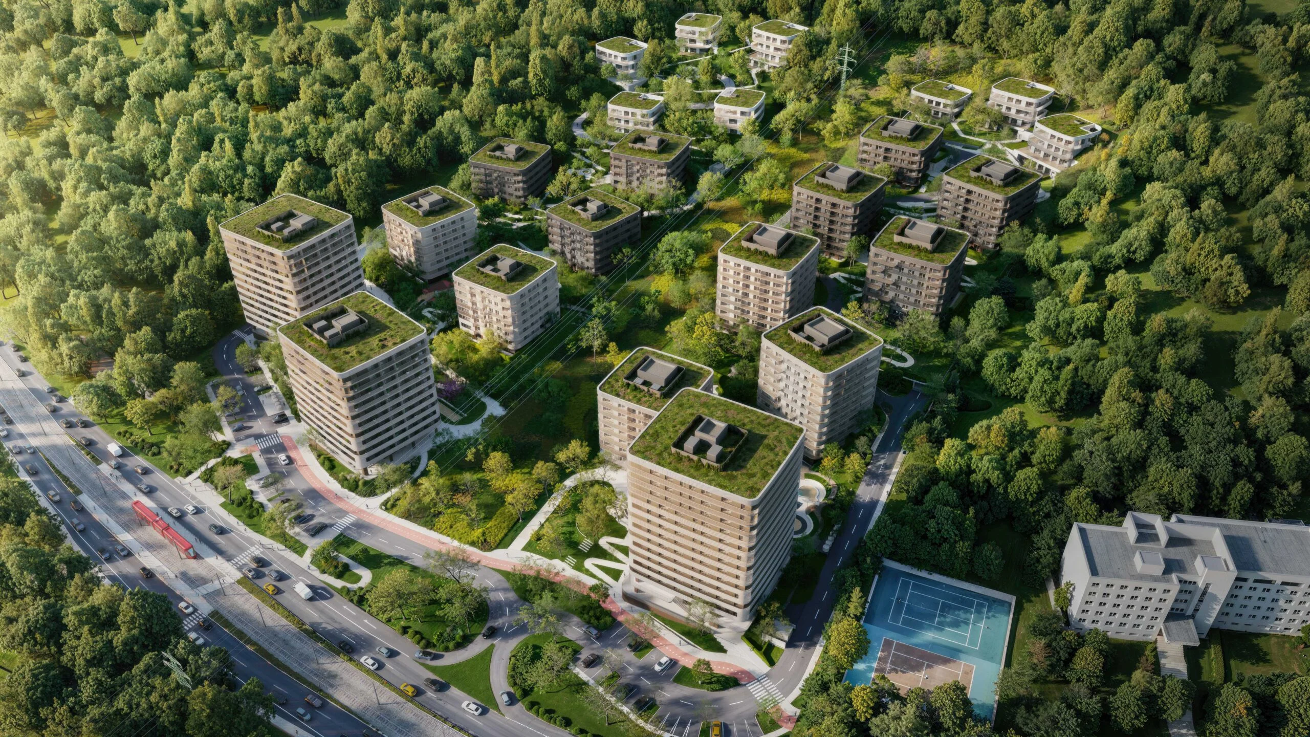 Vďaka týmto úpravám nebudú bytovky pôsobiť ako hradba. Budú mať len päť až osem podlaží a zaoblené hrany, ktoré majú vizuálne zjemniť ich osadenie do svahu. Aby sa v štvrti dalo dýchať, takmer celé parkovanie pre 1 200 áut zmizne pod zem.