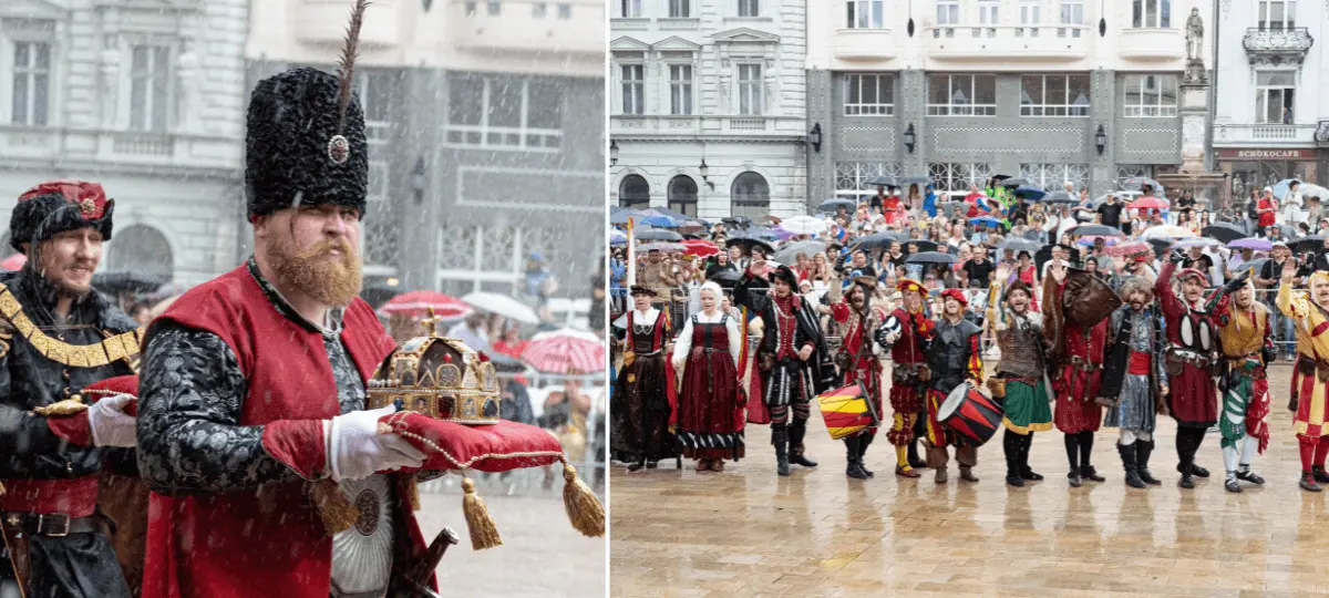 Približne 200-členný korunovačný sprievod sa vydá na cestu v sobotu 17. augusta o 15.00 h z Bratislavského hradu. „V slávnostnom korunovačnom sprievode si tento rok pripomenieme korunováciu Jozefa I. za uhorského kráľa. Tá sa v Bratislave uskutočnila 9. decembra 1687, keď mal nastávajúci panovník iba deväť rokov,“ pripomenul Grežo. Sobotňajší program spestria aj vystúpenia, ktoré sa o 16.00 h začínajú na Hlavnom námestí.