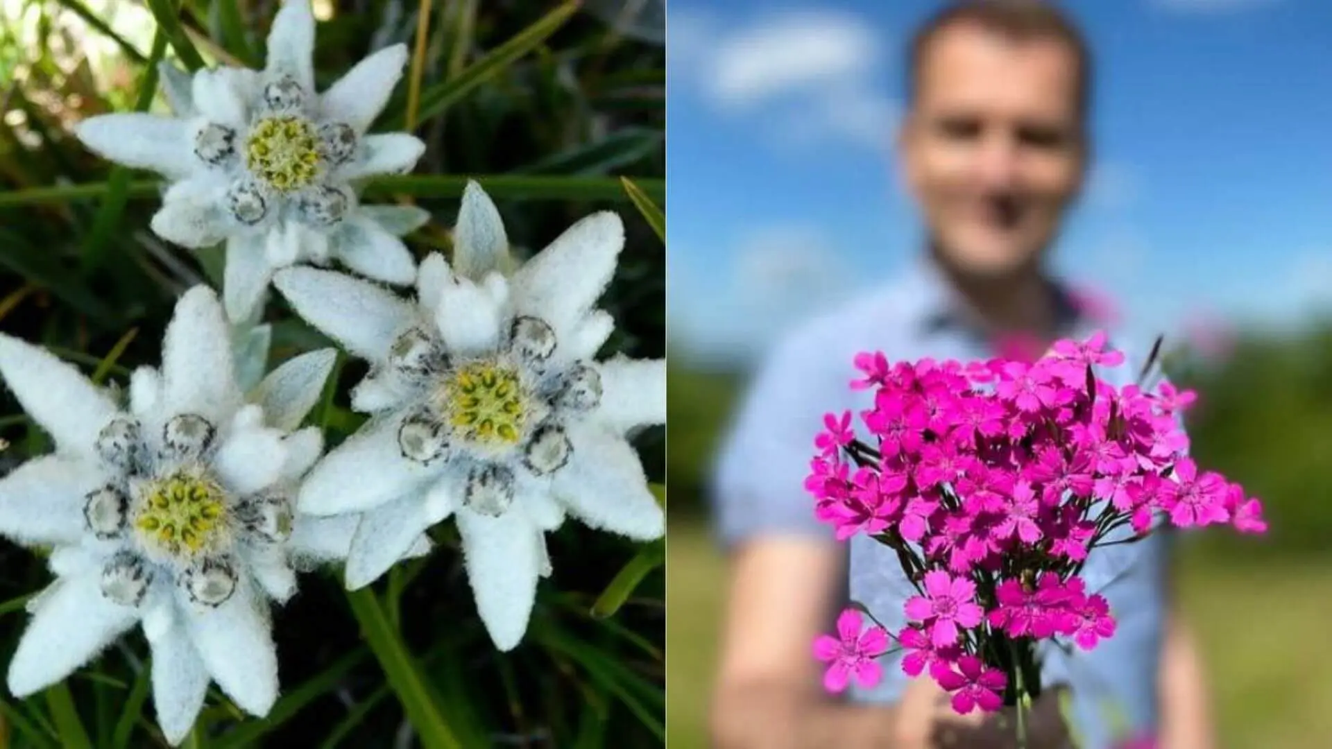 Veľmi vzácny biely kvietok, ktorý je pokrytý bielymi chĺpkami, ktoré vyzerajú ako plsť, sa vyskytuje vo výškach nad 2 000 m n. m. V žiadnom prípade ho netrhajte, pretože by ste mohli dostať vysokú pokutu. Názov tohto kvetu je...