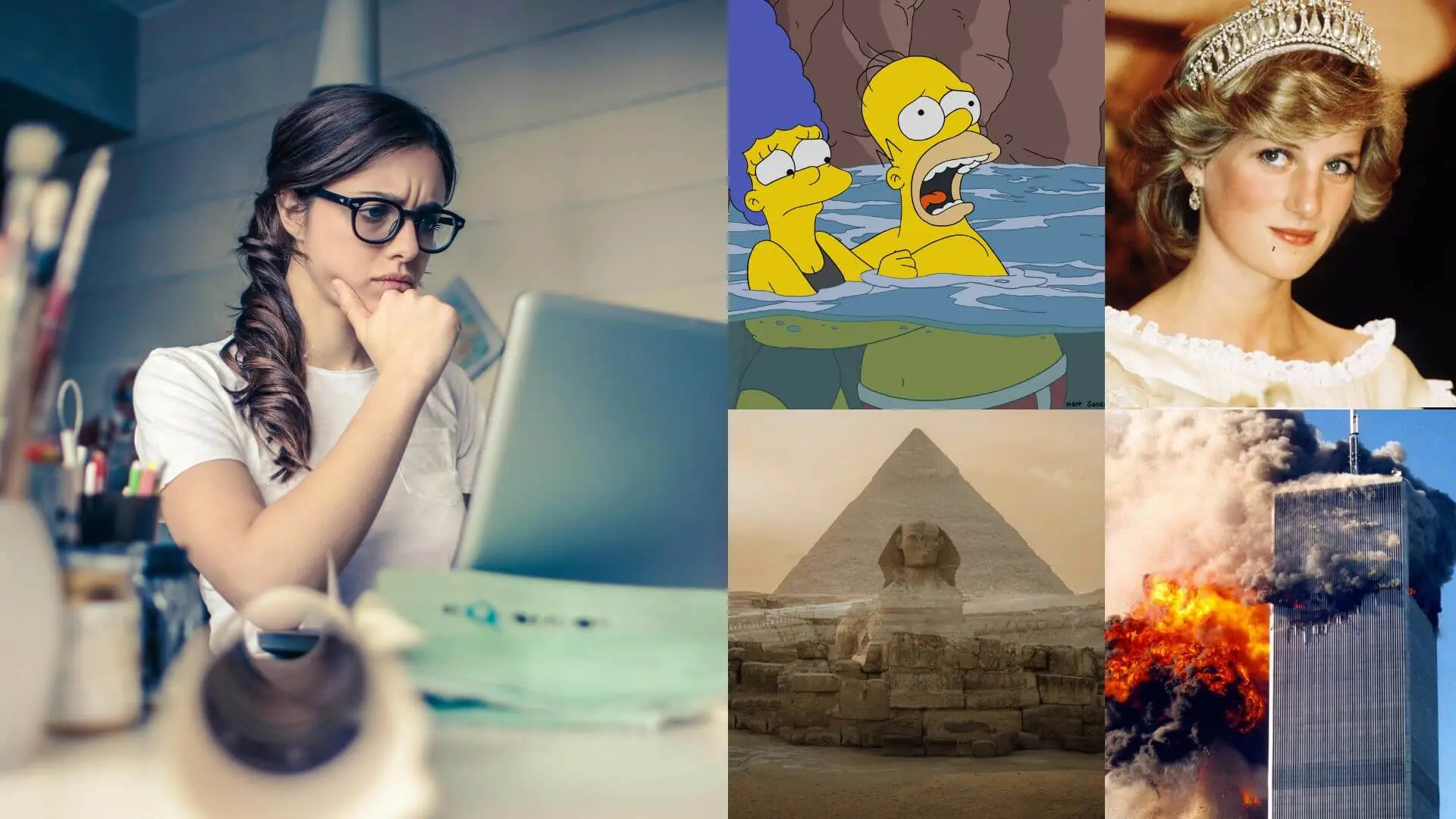 Vyznáte sa v konšpiračných teóriách? Zdroj: Pexels, X/ KSIĄŻĘ PÓŁKRWI, ClassicActorsOfHollywood, everest WORLD, The Simpsons