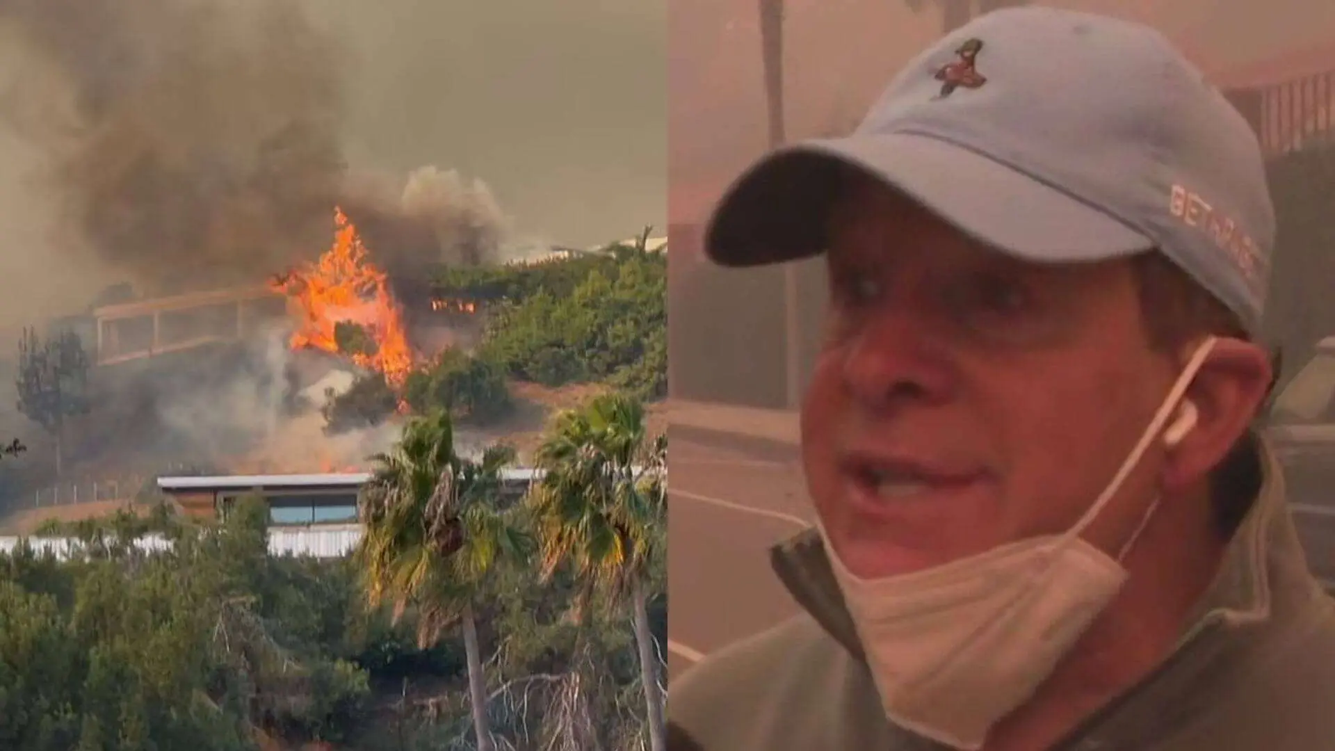 Flames have destroyed several buildings, with footage showing palm trees and hillsides on fire.