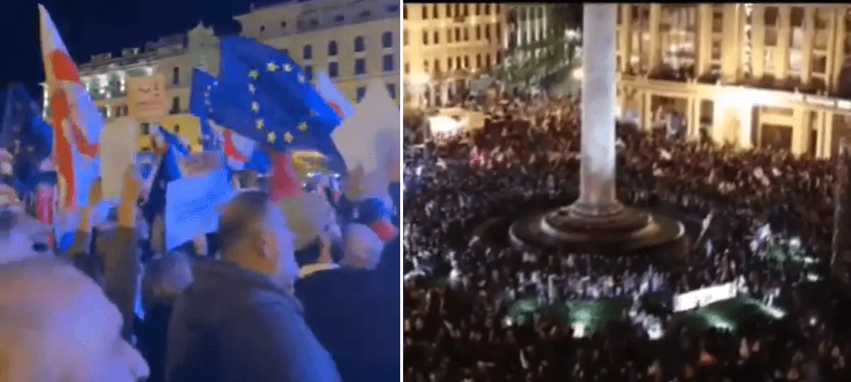 Prístupové rokovania však boli zo strany EÚ nedávno prerušené kvôli krokom miestnej vlády, ktoré EÚ označila za nepriaznivé pre právny štát a demokraciu. Niektorí demonštranti preto niesli vlajky Gruzínska a Európskej únie a transparenty s heslami ako „Gruzínsko si vyberá EÚ“, píše Denník N.