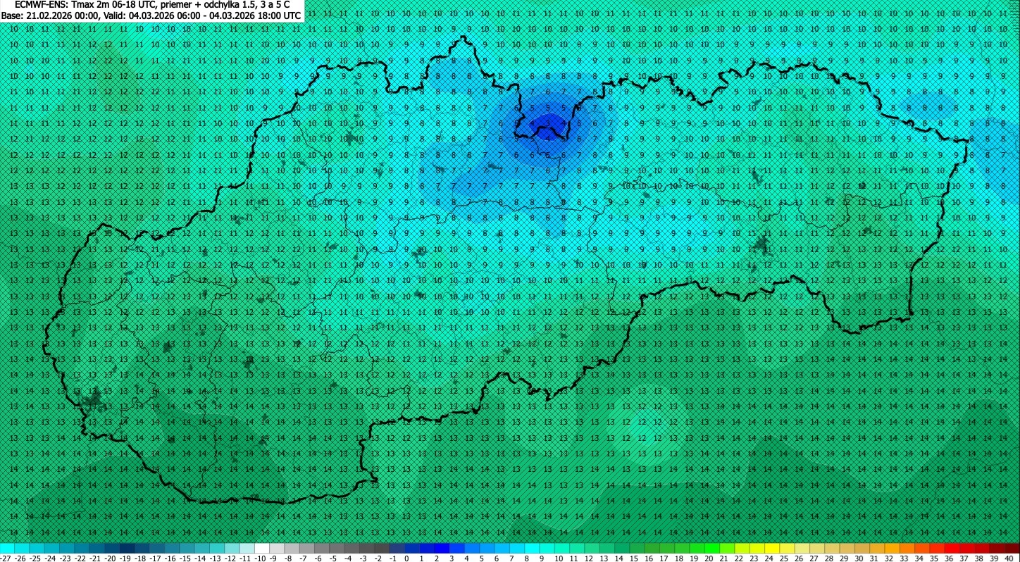 Podľa aktuálnych modelov by mali teploty kulminovať počas piatka a nadchádzajúceho víkendu. Na juhu Nemecka či v susedných Čechách, konkrétne v okolí Prahy, sú predpoklady, že teploty budú atakovať hranicu +20 °C. Slovensko nezaostane – v našich najteplejších regiónoch sa očakáva stabilné prekročenie +15 °C.