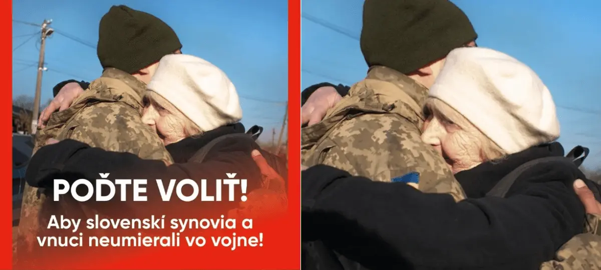 Ministri strany Hlas-SD zdieľali výzvu k prezidentským voľbám s upravenou fotografiou staršej panej, ktorá objíma vojaka a heslom: „Aby slovenskí synovia a vnuci neumierali vo vojne!“. Na pôvodnej fotografii, ktorú použili, je pritom ukrajinský vojak.