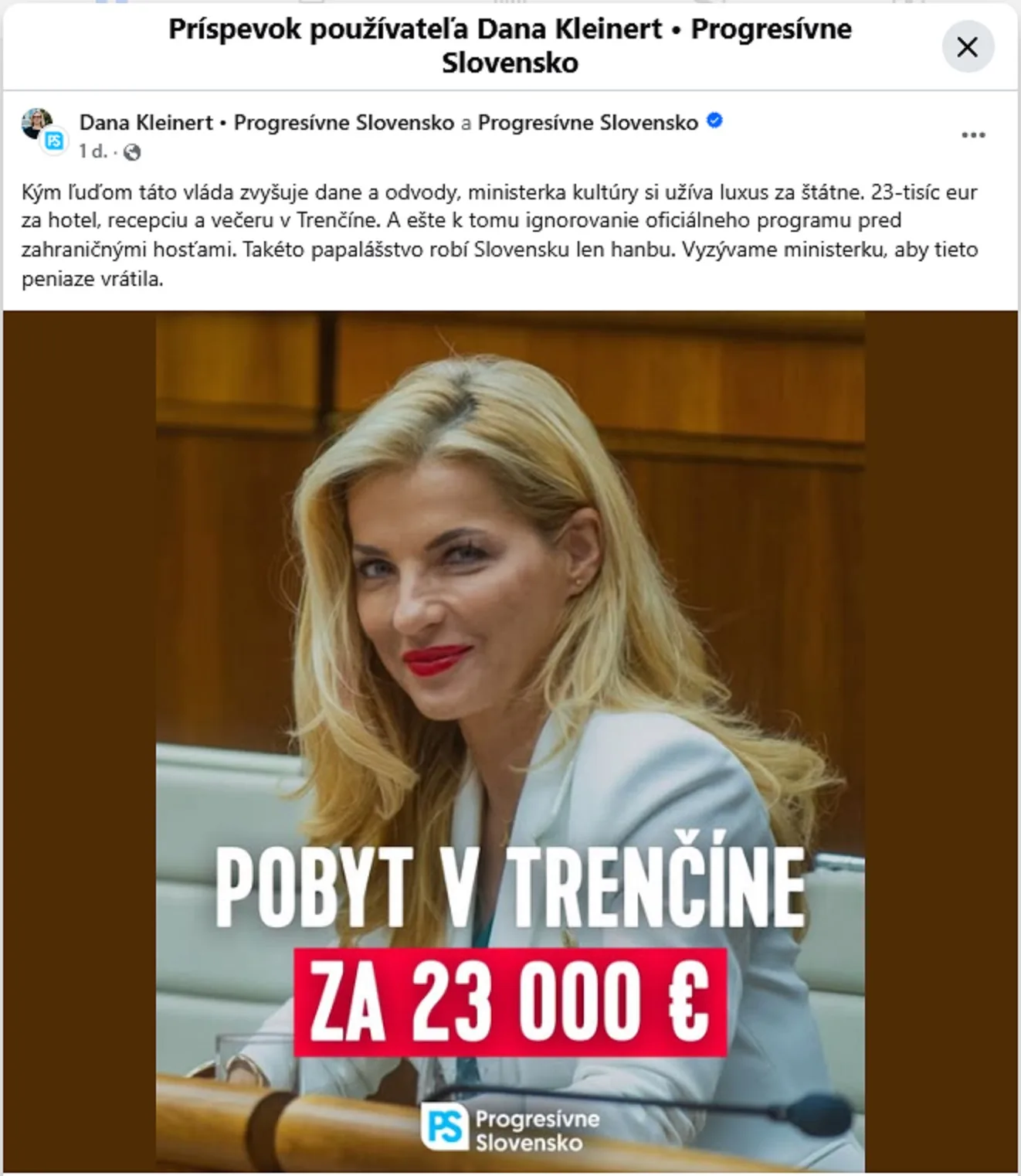 Podľa hnutia takéto správanie, ktoré opozičné zdroje označujú ako „papalášstvo“, poškodzuje reputáciu Slovenska pred očami zahraničných partnerov a vytvára dojem, že štátne peniaze sú využívané na súkromné potešenie namiesto podpory kultúry.