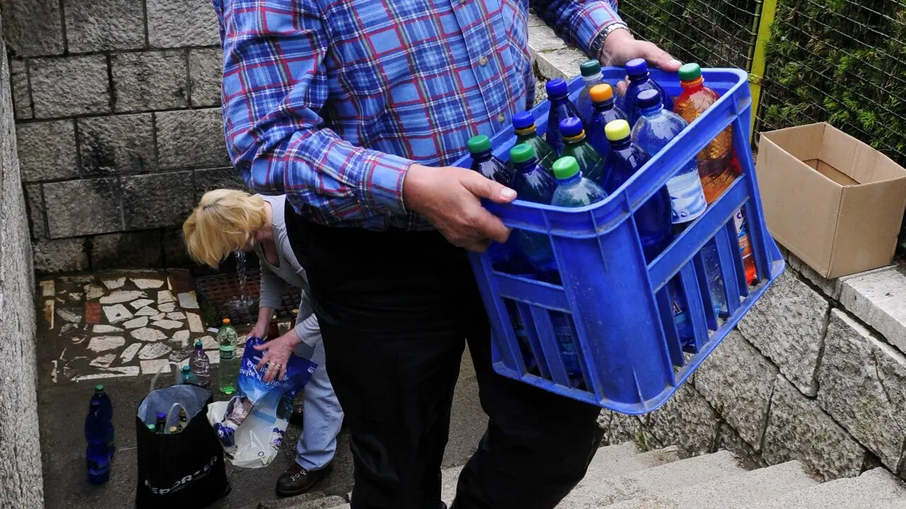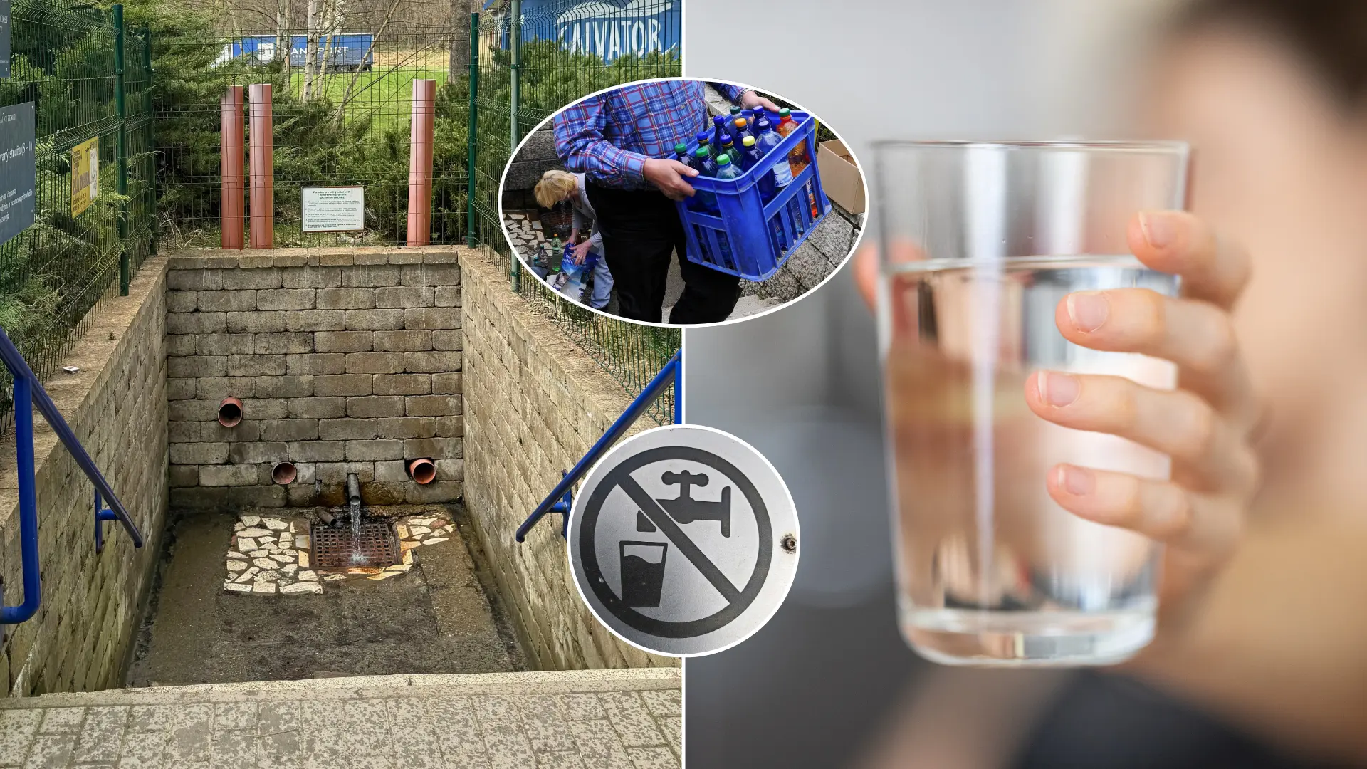 Na snímke je odberné miesto vody z prameňa Salvator v obci Lipovce. Zdroj: FOTO TASR/Maroš Černý, canva