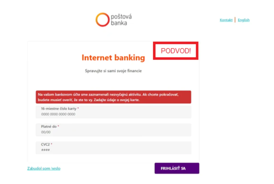 Kybernetickí podvodníci opäť útočia na klientov bánk a snažia sa získať prihlasovacie údaje do internet bankingu alebo informácie k platobným kartám. Najnovšie sa objavili falošné stránky, ktoré napodobňujú internet banking jednej zo slovenských bánk a môžu sa objaviť aj vo výsledkoch vyhľadávania na internete.