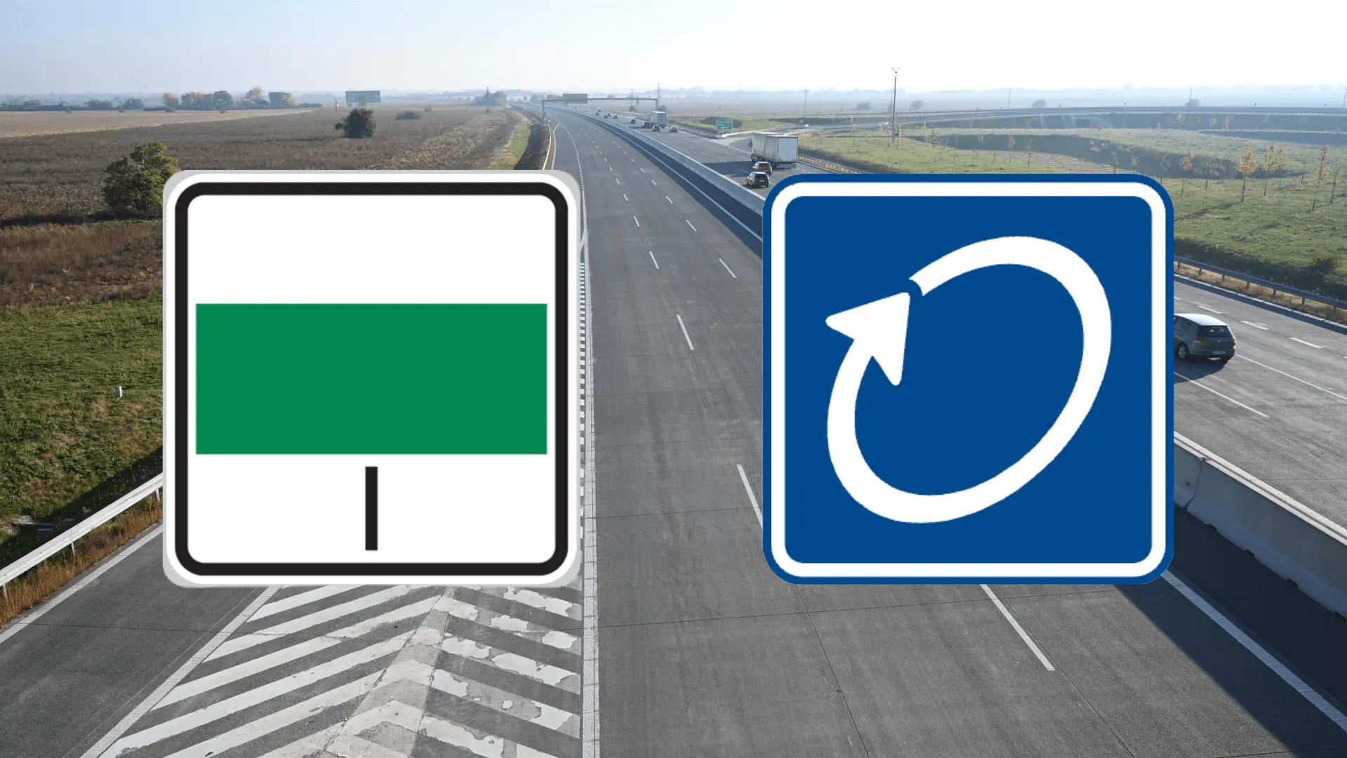 Novšia verzia značky: Nová verzia značky má taktiež štvorcový tvar, avšak obsahuje bielu šípku v tvare oválu na modrom alebo zelenom pozadí. Číslo okruhu je uvedené arabskými číslicami. Táto modernizovaná verzia bola zavedená s cieľom zjednotiť a zjednodušiť dopravné značenie v súlade s európskymi štandardmi.