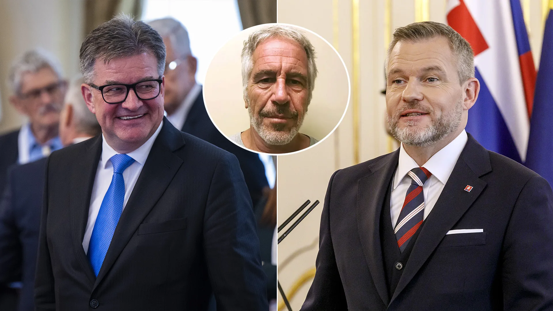 Na snímke je Miroslav Lajčák, prezident SR Peter Pellegrini a uprostred je zosnulý americký finančník Jeffrey Epstein. Zdroj: FOTO TASR/Jakub Kotian, FOTO TASR/Dano Veselský, TASR/AP, koláž: istream