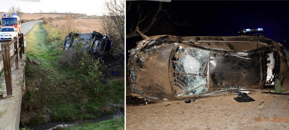 Mimo cesty skončil VW Passat, ktorý riadil 28-ročný šofér. V smere od obce Kolta na obec Čaka po zídení z cesty narazil prednou časťou vozidla do svahu priekopy. Vozidlo zostalo po náraze prevrátené na ľavú bočnú stranu mimo cesty. Hliadka zistila u vodiča prítomnosť alkoholu, v dychu mal 1,52 promile.