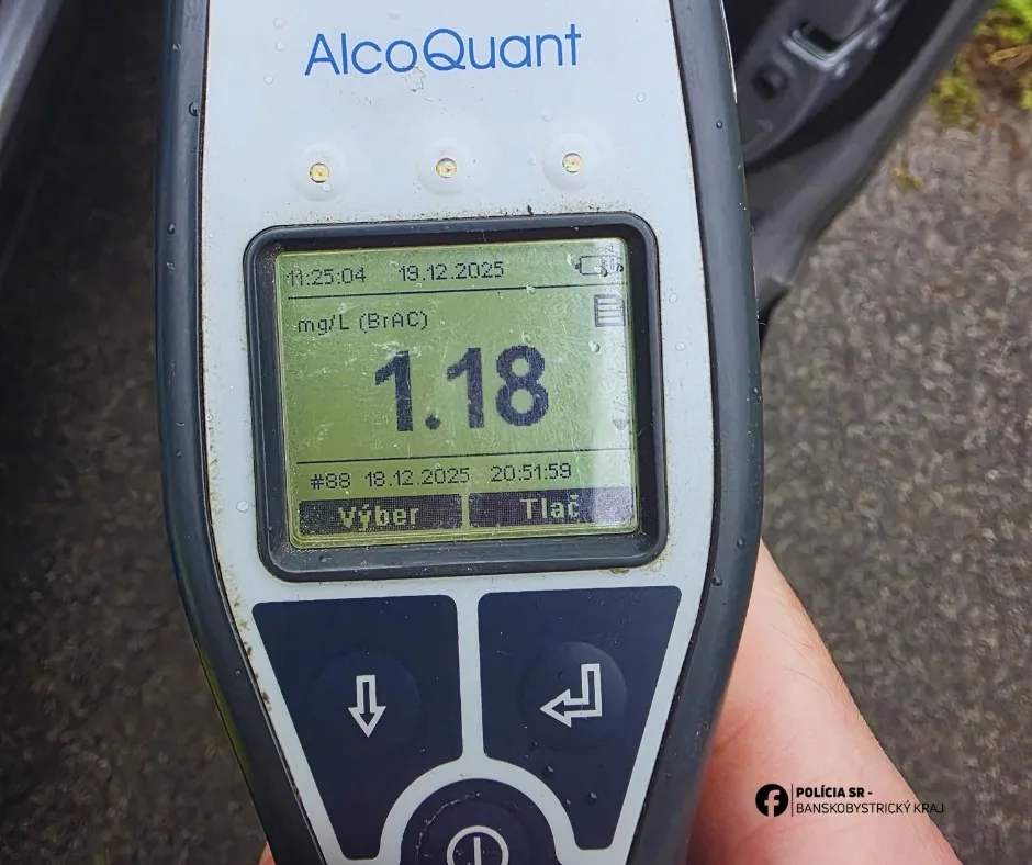 Policajná hliadka zo Žiaru nad Hronom zastavila vo štvrtok (18. 12.) vo večerných hodinách 49-ročného vodiča cudzej štátnej príslušnosti, ktorý počas policajnej kontroly nafúkal 2,5 promile.