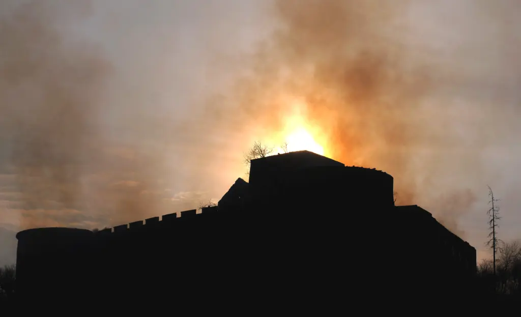 Vzhľadom na mimoriadne suché počasie po zime a silný, nárazový vietor sa plamene šírili rýchlosťou blesku. Žeravé uhlíky vietor vyniesol až k hradným múrom, kde sa zachytili na tradičnej drevenej šindľovej streche. Práve tento horľavý materiál sa stal pre pamiatku osudným – oheň bleskovo zachvátil horný, stredný aj dolný hrad.