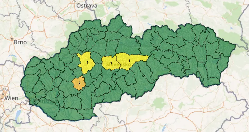 Výstrahy 1. a 2. stupňa pred povodňami. Foto: reprofoto/shmu.sk