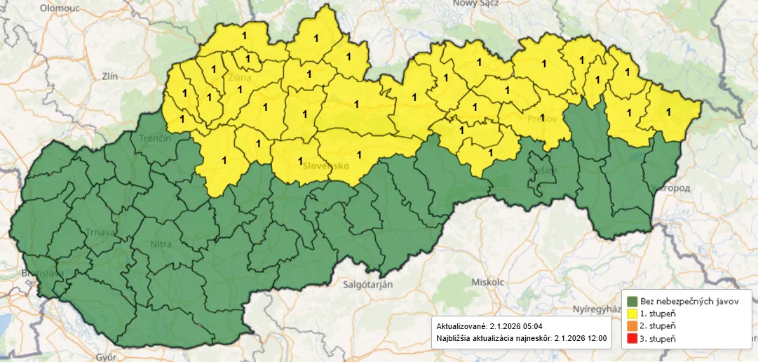 Nepriaznivé zimné počasie sa opäť hlási o slovo. Slovenský hydrometeorologický ústav (SHMÚ) vydal na piatok a sobotu výstrahy prvého stupňa pre viaceré okresy, pričom najviac zasiahnuté sú severné regióny Slovenska. Situáciu môžu skomplikovať nielen snehové jazyky a záveje, ale aj silný vietor a extrémne nárazy vetra na horách.