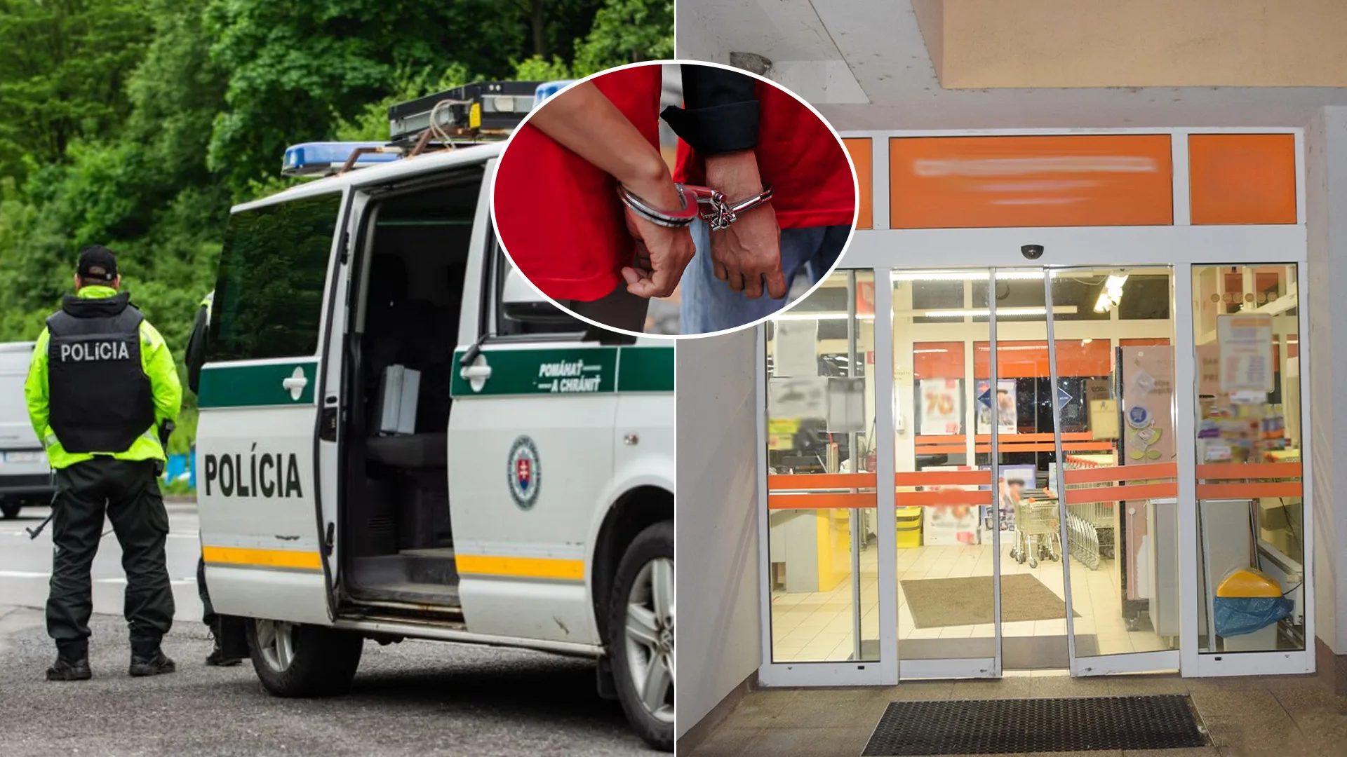 Ilustračné fotografie. Na snímke vpravo je vstup do predajne, kde sa dvojica zlodejov vlámala. Zdroj: FOTO TASR/Daniel Stehlík, FACEBOOK /Polícia SR - Trenčiansky kraj , ISTOCK/Hari Sucahyo, koláž: istream