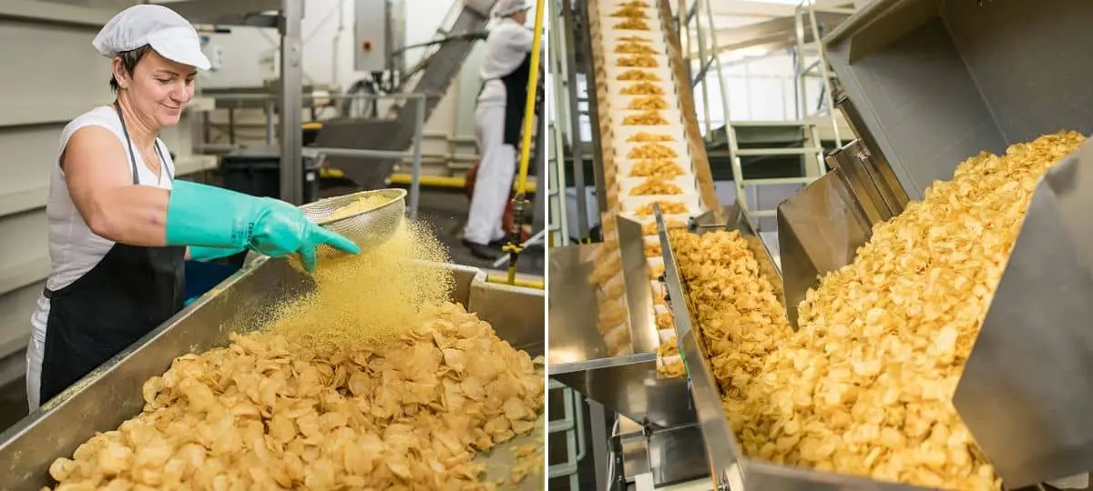 Proces výroby u nás začína privezením zemiakov na linku, kde sa následne čistia a triedia. Očistené a vytriedené zemiaky ďalej putujú linkou na krájanie, smaženie, dochutenie a následné balenie. Aktuálne už je celý proces výroby automatizovaný, čo nám zabezpečuje držanie kvality na stálej úrovni. Ručne momentálne prebieha iba ukladanie samotných balíčkov do kartónov.