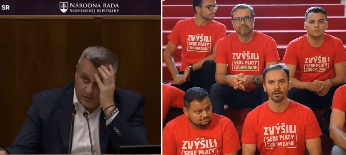 Poslanci za Matovičove hnutie Slovensko prišli na rokovanie Národnej rady SR v červených tričkách s nápismi „Zvýšili sebe platy, ľuďom dane“. Podpredseda parlamentu Andrej Danko (SNS), ktorý rokovanie viedol, ich chcel vykázať zo sály, píše agentúra SITA.