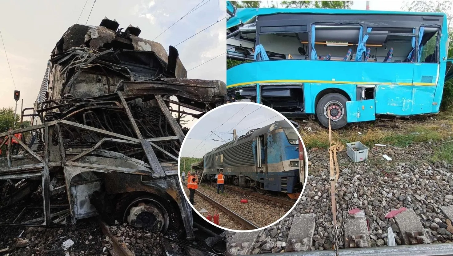 Zrážka vlaku a autobusu v Nových Zámkoch (27. jún 2024). Zdroj: FB/Hasičský a záchranný zbor,Hasičský a záchranný zbor,Hasičský a záchranný zbor