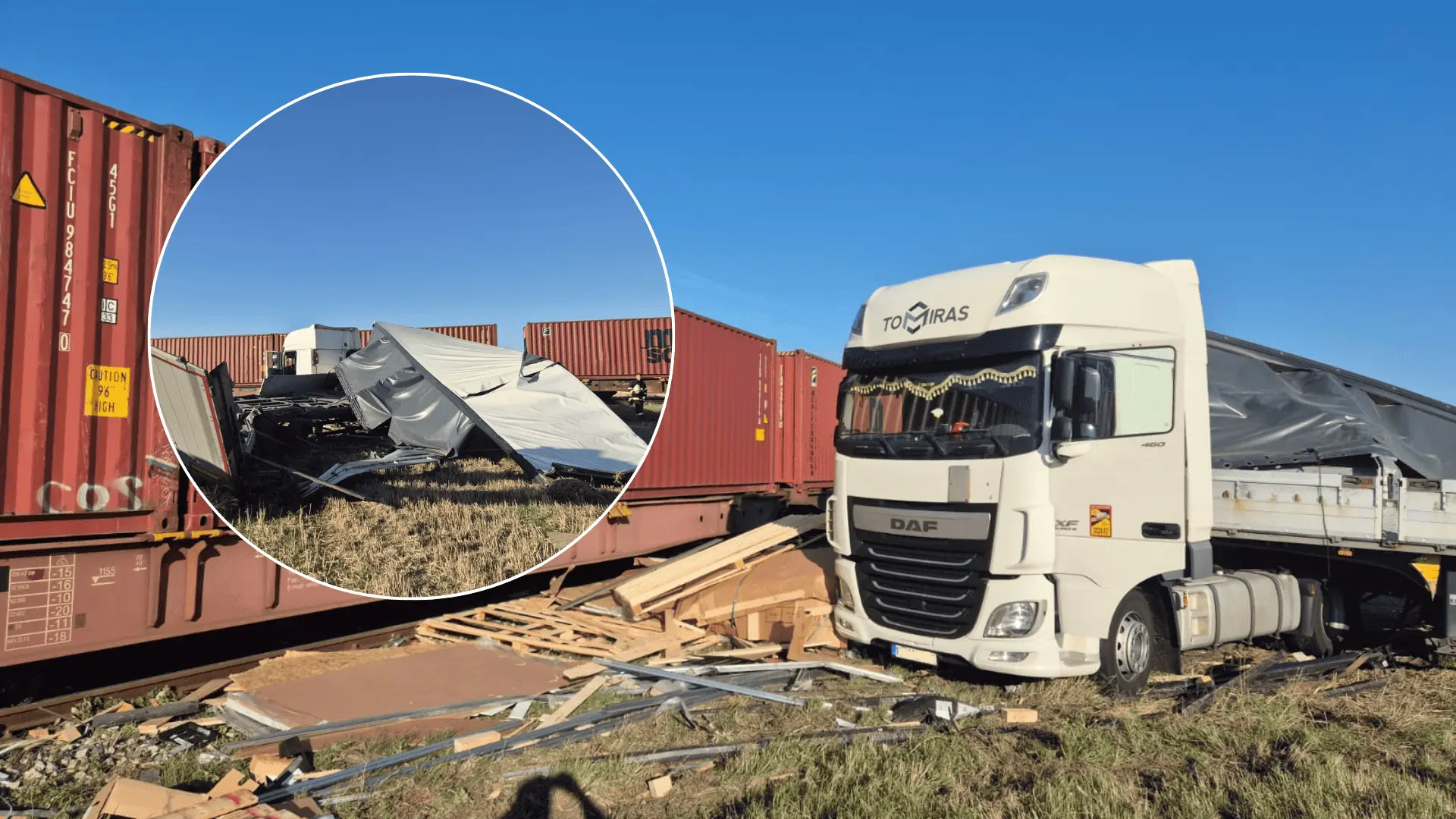 Po náraze vlakom bolo nákladné auto odhodené mimo cestu, pričom sa jeho prepravovaný náklad rozsypal v okolí – čiastočne v poli a čiastočne v tesnej blízkosti železničnej trate. Informovalo o tom Krajské riaditeľstvo Hasičského a záchranného zboru v Nitre.
