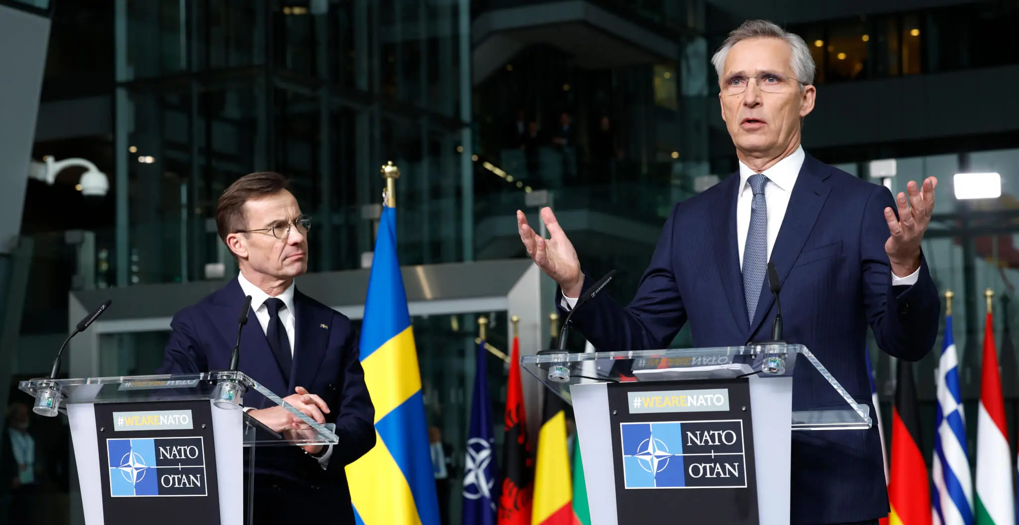 „Švédsko bolo dlho naším partnerom, teraz je naším spojencom so všetkými výhodami, ale aj zodpovednosťou, ktorá z toho vyplýva. Jeden za všetkých, všetci za jedného,“ povedal šéf NATO.