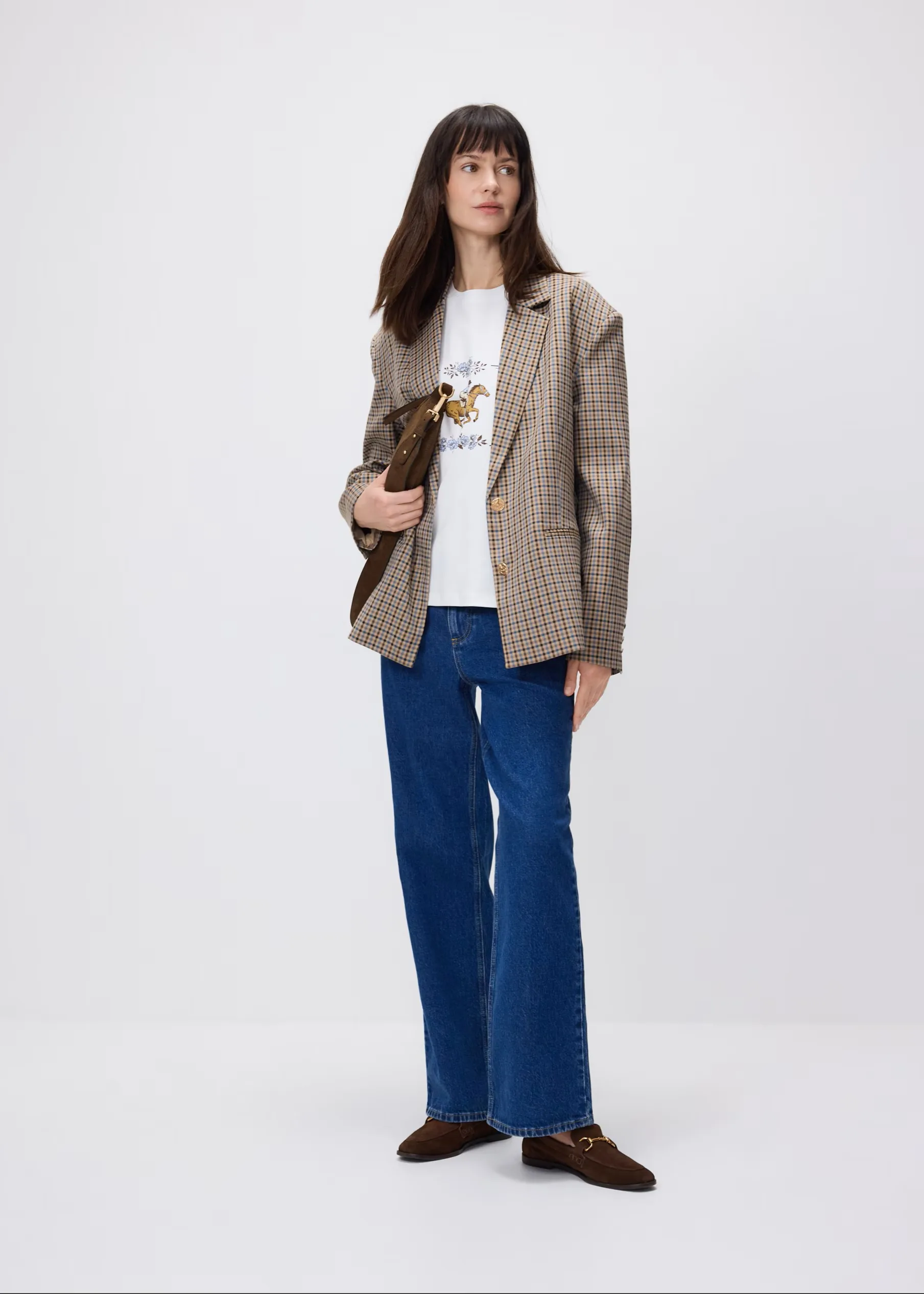 Džínsy mom, ktoré sú už roky prítomné v ženských šatníkoch, získavajú na jar ešte väčšiu univerzálnosť. Ich vysoký pás a jemne zaoblená línia bokov umožňujú vytvárať štylizácie, ktoré môžu byť zároveň uvoľnené aj premyslenejšie. Stačí zmeniť obuv a kabelku, aby si plynulo prešla od každodenného outfitu na prechádzku k štylizácii vhodnej na rodinné stretnutie. Vyskúšaj ich, ak hľadáš strih, ktorý ponúka veľkú štylistickú flexibilitu.