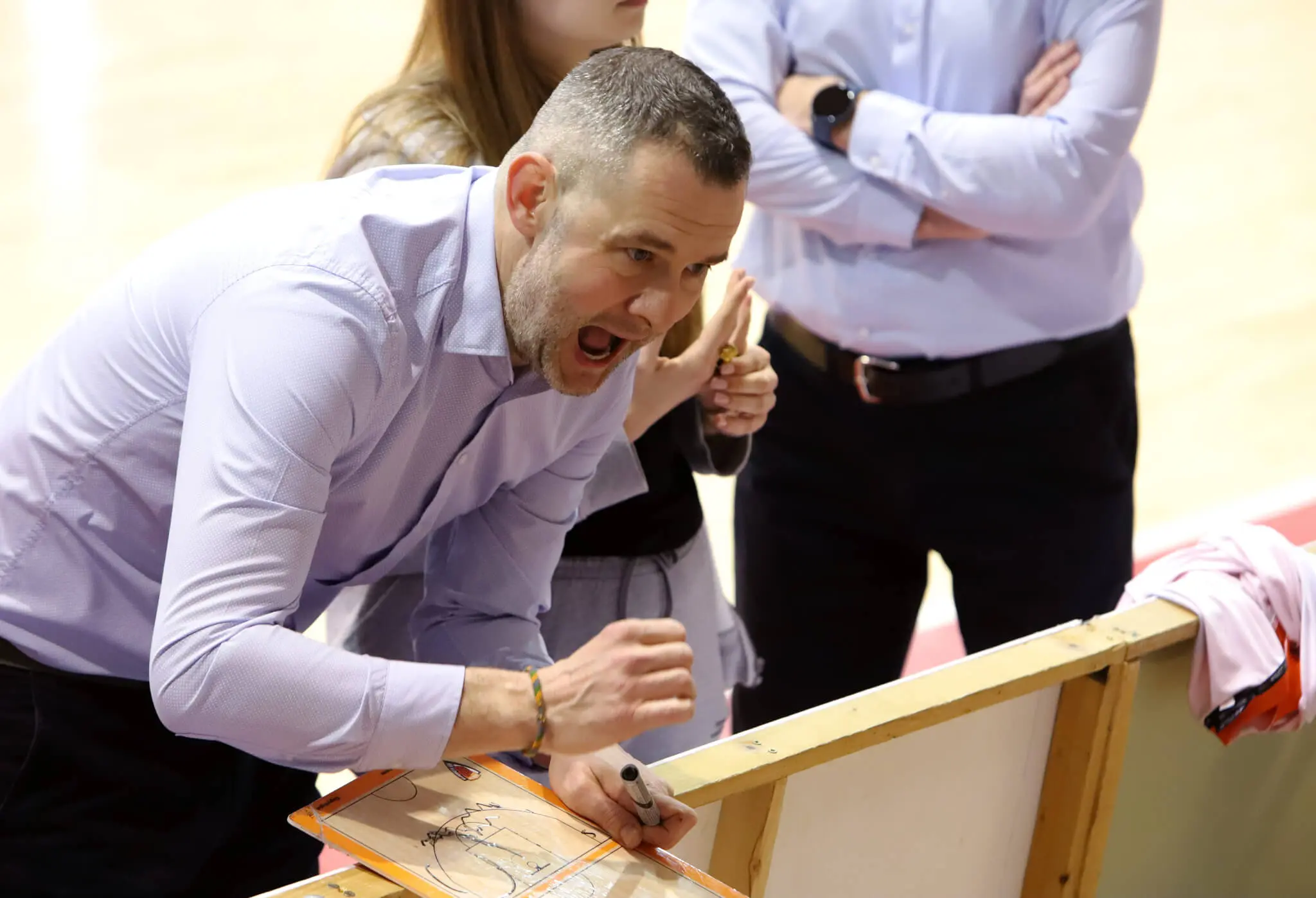 Na snímke tréner MBK Ružomberok Juraj Suja poèas zápasu play off Niké extraligy v basketbale žien MBK Ružomberok - Slávia Banská Bystrica v Ružomberku 1. apríla 2023. FOTO TASR - Ján Krošlák
