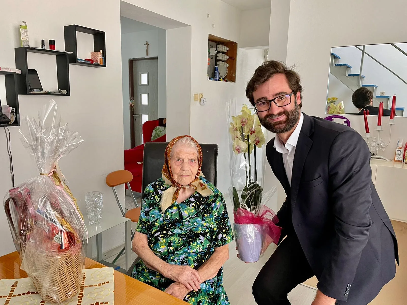 V sobotu 21. februára v nočných hodinách navždy dotĺklo srdce najstaršej Slovenky Juliany Jarošovej († 107). Na snímke s primátorom Nitry Marekom Hattasom. Zdroj: Facebook/Mesto Nitra