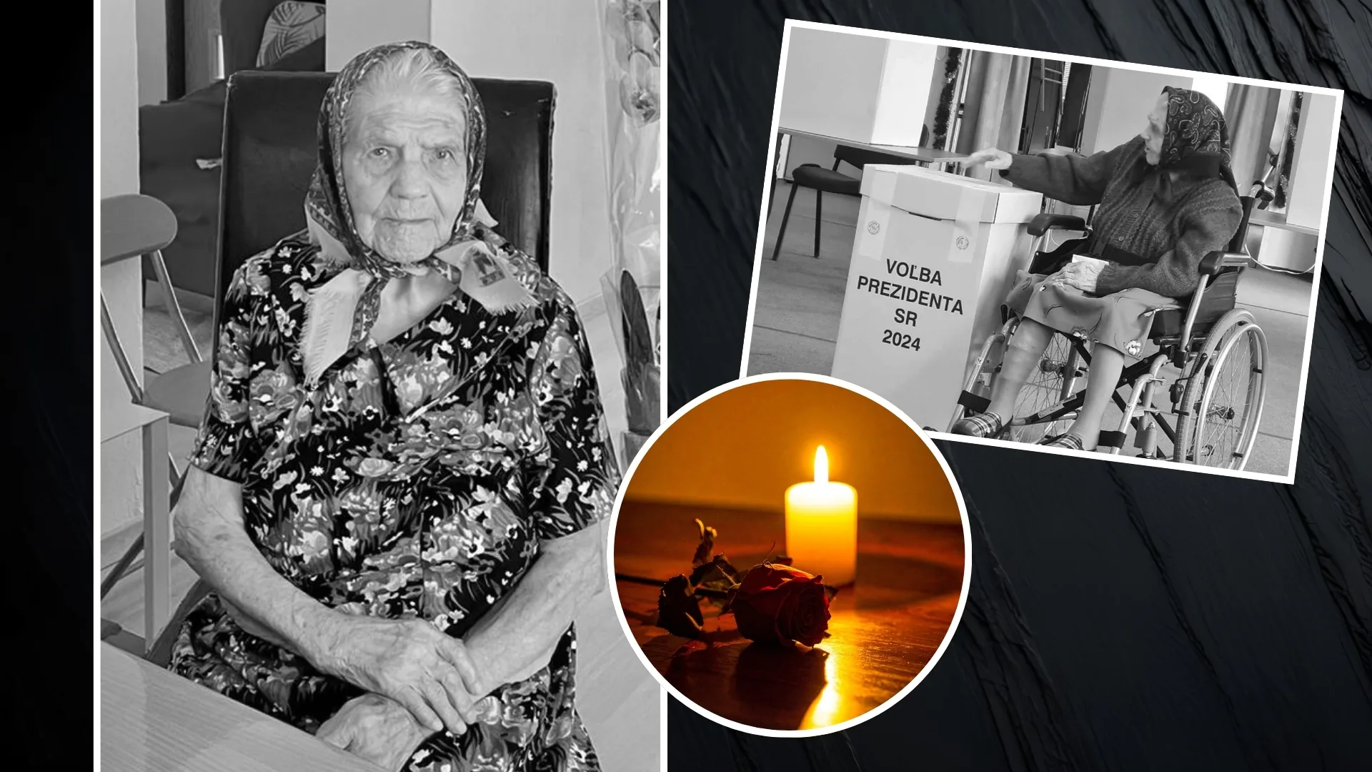 V sobotu 21. februára v nočných hodinách navždy dotĺklo srdce najstaršej Slovenky Juliany Jarošovej († 107). Zdroj: Facebook/Mesto Nitra , Facebook/Nitralive , canva