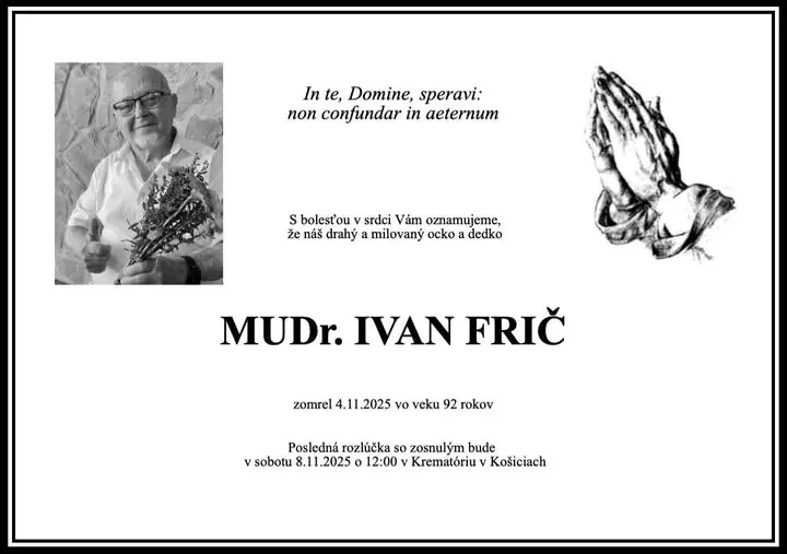 Vo veku 92 rokov zomrel bývalý dlhoročný primár neonatologického oddelenia košickej nemocnice a jeden z nestorov slovenskej neonatológie Ivan Frič.