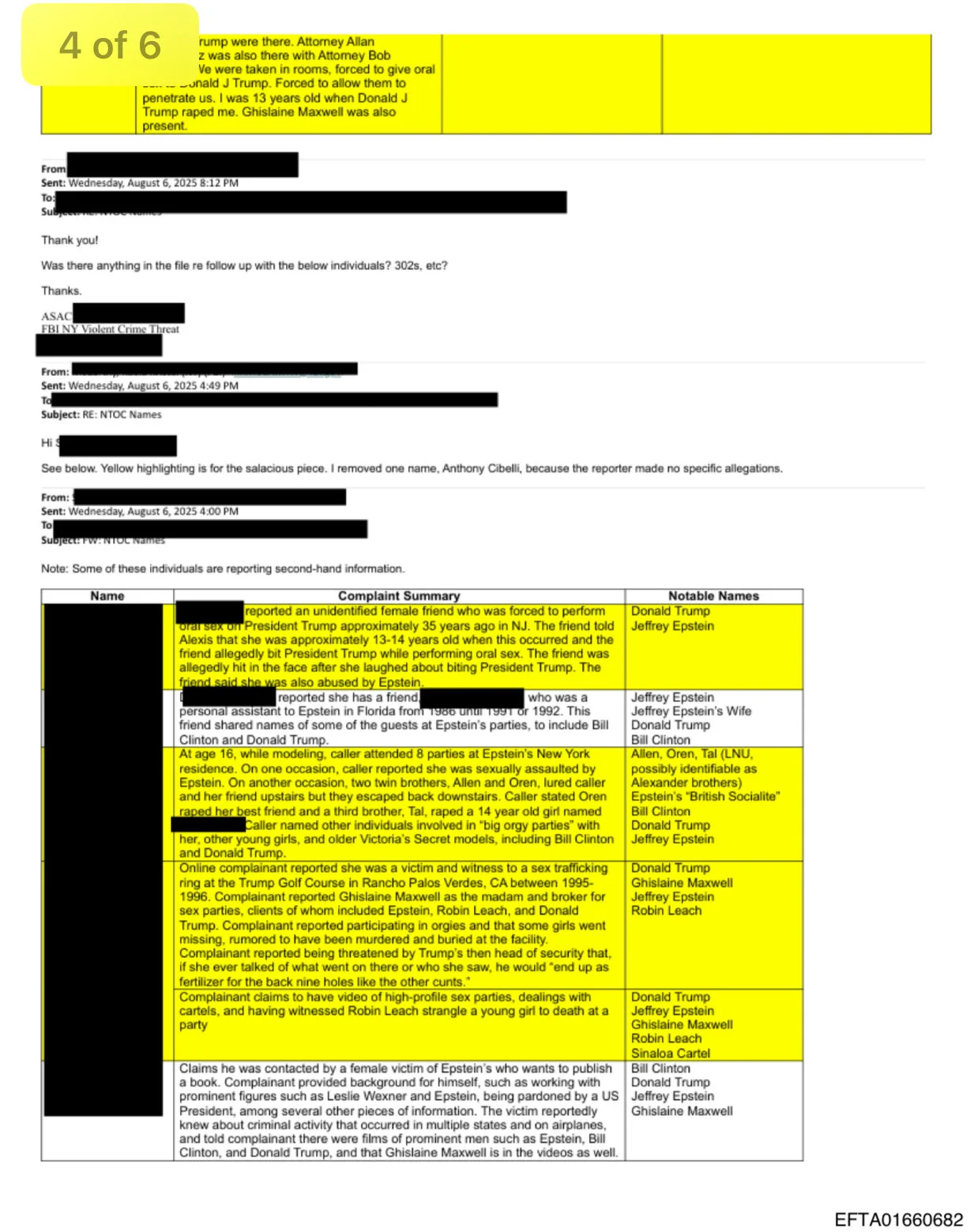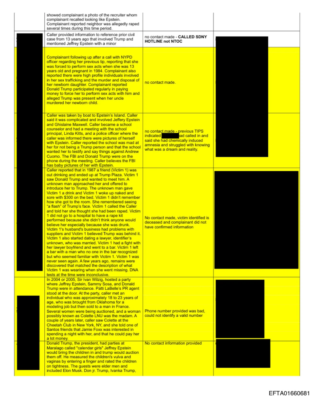 „Donald Trump usporadúval v Mar-a-Lagu (Trumpovo sídlo na Floride, pozn. red.) večierky nazvané „kalendárové dievčatá“. Jeffrey Epstein privádzal deti a Trump ich dražil. Meral vulvy a vagíny detí tým, že do nich vkladal prst a hodnotil ich podľa tesnosti,“ píše sa v dokumente.