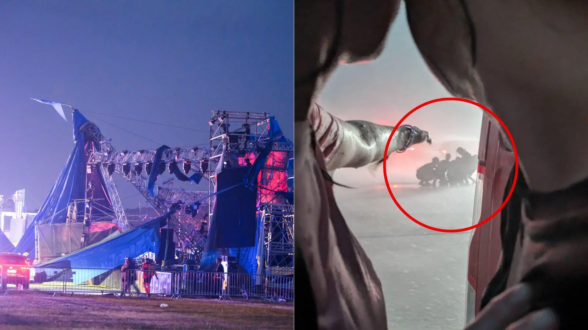 Počas búrky, ktorá trvala približne dvadsať minút, spadlo viacero stanov a došlo k značným škodám. Najväčší festivalový stan skolaboval pod náporom vetra, čo vyvolalo medzi návštevníkmi paniku. Záchranári ošetrili 15 ľudí, z ktorých 14 previezli do nemocníc s ľahšími zraneniami, no dve ženy utrpeli vážnejšie úrazy. Napriek tomu, že väčšina areálu zostala bez elektriny, evakuácia prebehla pokojne a disciplinovane. Návštevníci boli informovaní o možnosti zostať v stanovom mestečku do nasledujúceho dňa a o poskytnutí základného sortimentu nápojov a jedál.