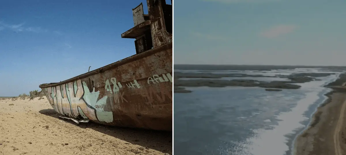 Aralské jazero patrilo k štvrtým najväčším na svete, kým ho sovietske zavlažovacie projekty pripravili o vodu a zapríčinili, že takmer vyschlo.