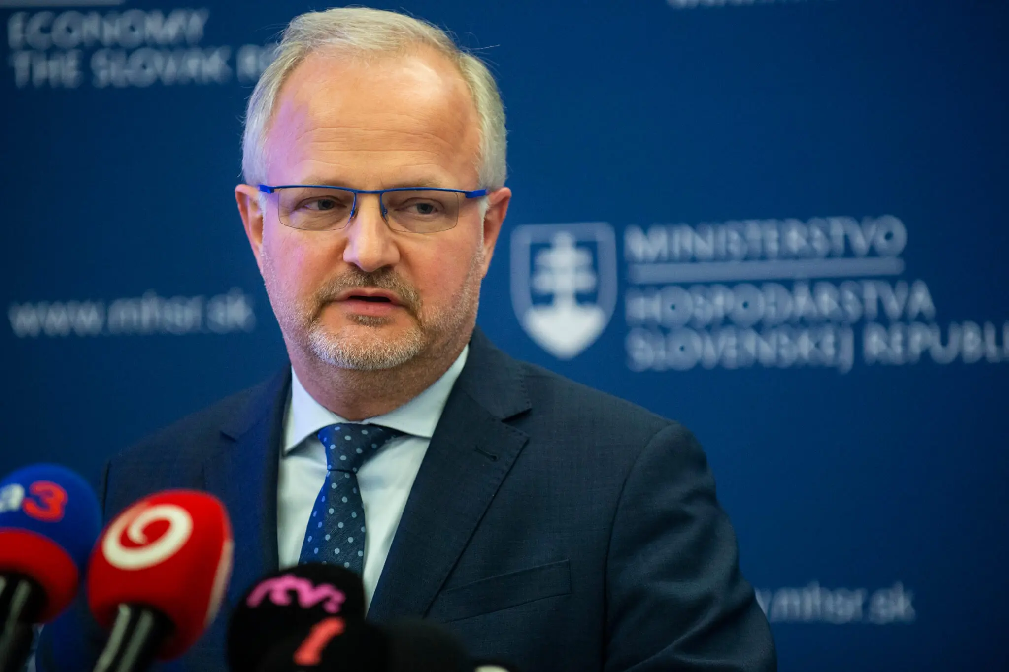 Na snímke štátny tajomník ministerstva hospodárstva SR Peter Švec poèas tlaèovej konferencie na tému Výsledky pôsobenia ministra Karla Hirmana a štátnych tajomníkov za sedem mesiacov na ministerstve hospodárstva SR a podnety na kontinuitu do budúcnosti v Bratislave v stredu 11. mája 2023. FOTO TASR - Jakub Kotian *** Local Caption *** MH Peter Švec portrét šírka