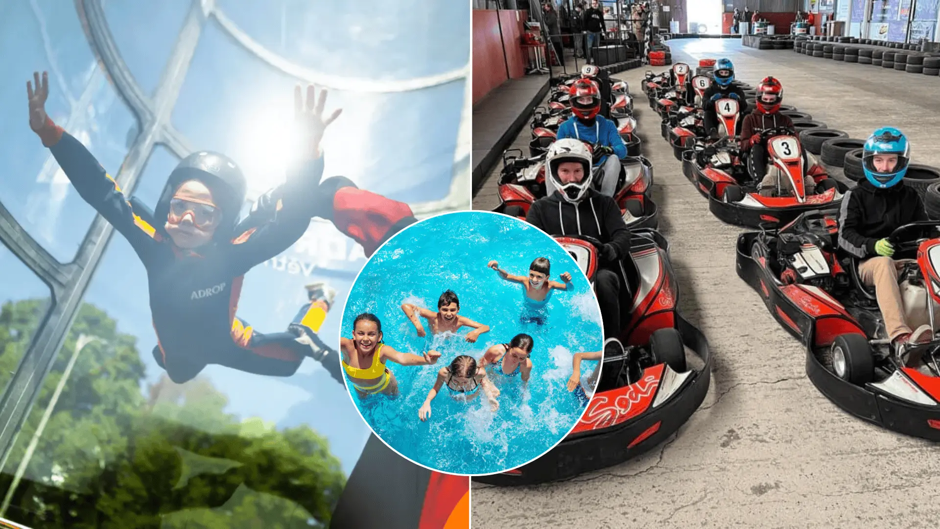 - adrenalínový let vo veternom tuneli aj so simulátorom voľného pádu a rýchlosťou prúdenia vzduchu až 270 (287) km/h s dĺžkou od 3 do 15 minút,
