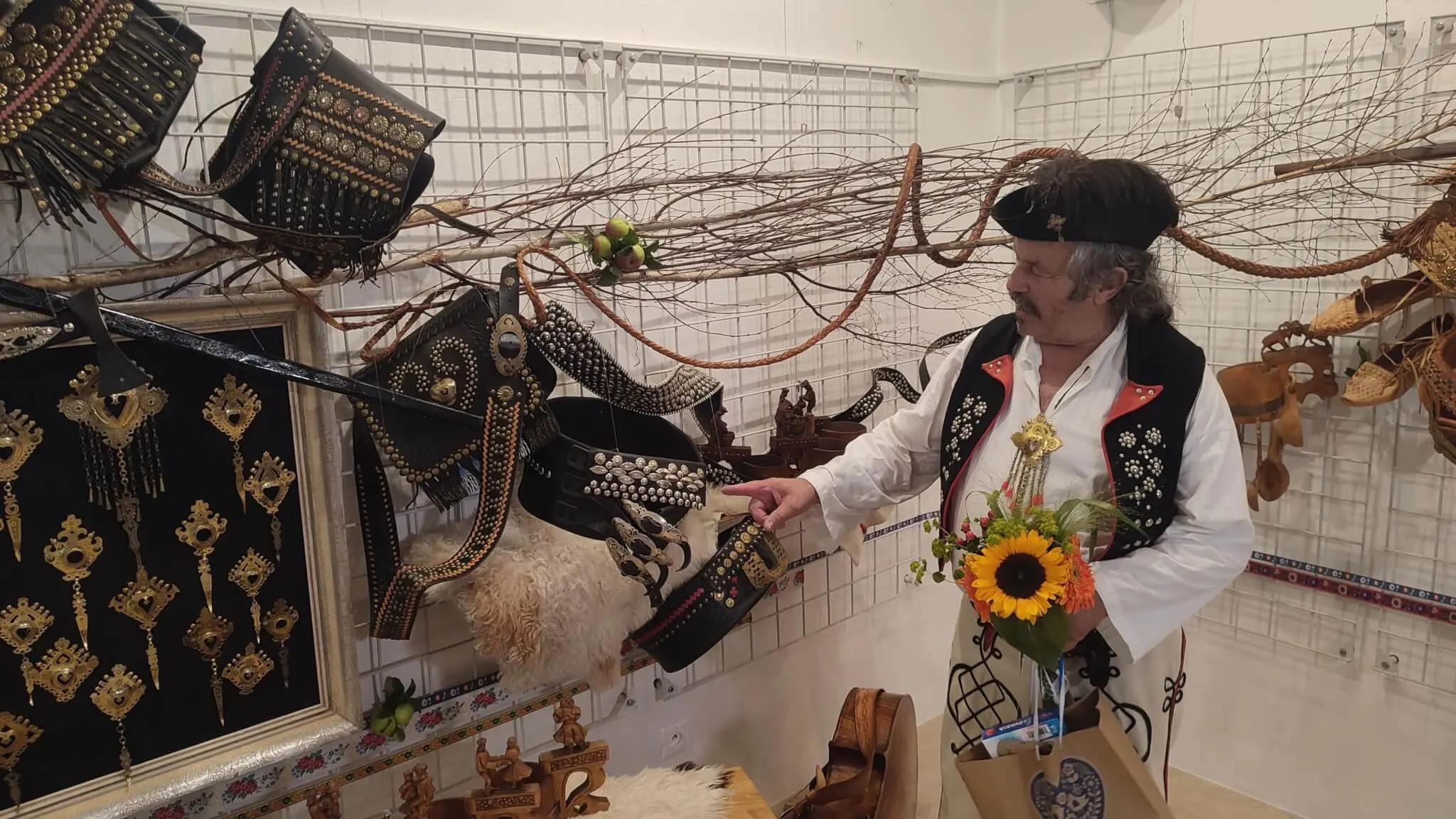 Výstava Tibora Mahúta predstavuje tvorbu z dreva, kože a mosadzného plechu, ako sú opasky, pracky, blanciare, pastierske kapsy, krpce či črpáky. „Veľmi ma ovplyvnilo vystupovanie v súbore Rozsutec, kde som prišiel do styku s krpcami a opaskami. Aj keď som už skôr vyrábal nejaké veci, ale nie takéto. V Rozsutci som pôsobil tridsať rokov, potom v ďalších súboroch. Popri tom som urobil veľa choreografií domácim aj zahraničným súborom,“ povedal.