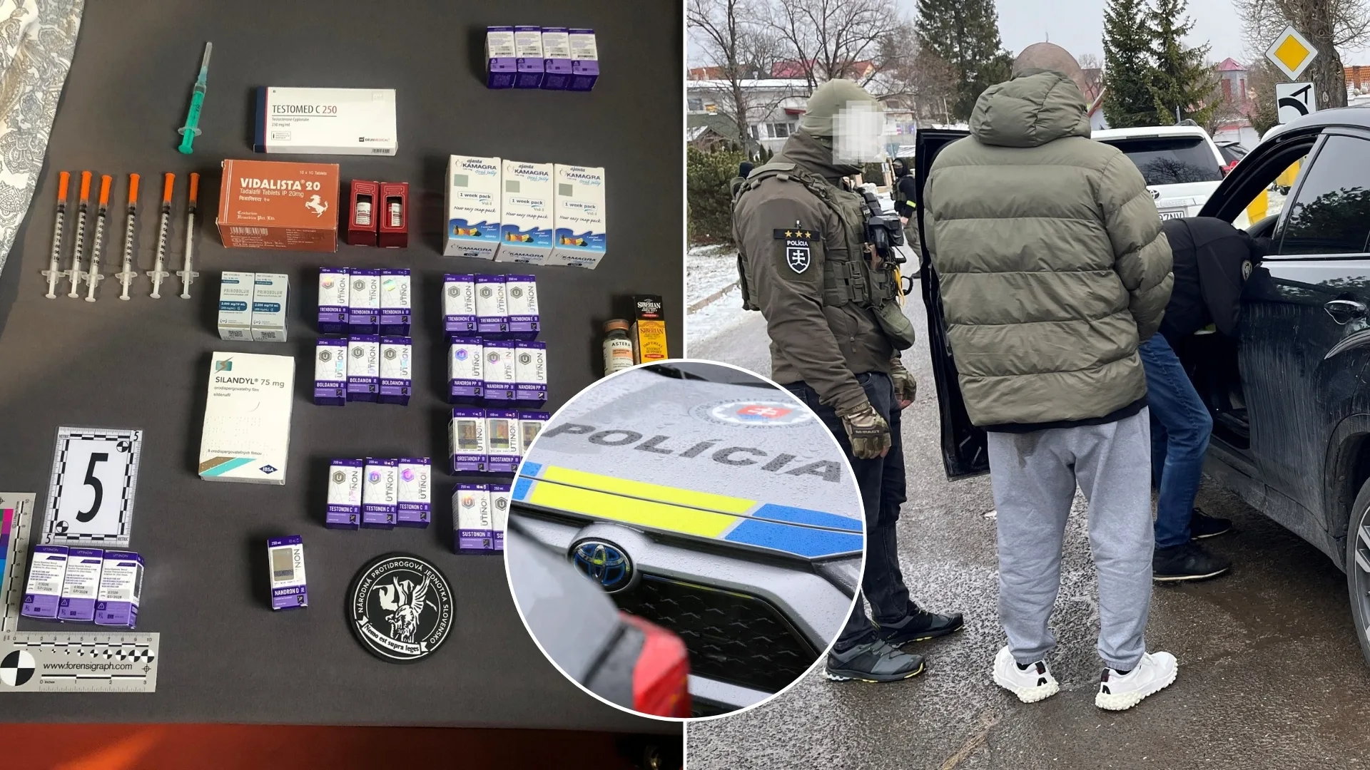 Ako informuje polícia na sociálnej sieti, v rámci úlovku sa im podarilo zaistiť mimoriadne veľké množstvá anabolík. „Rozsiahla policajná razia bola zameraná na osoby podozrivé z nelegálneho obchodovania s látkami s anabolickým alebo iným hormonálnym účinkom. Podľa našich doterajších zistení mali podozrivé osoby tieto látky neoprávnene zadovažovať a s cieľom finančného zisku ich poskytovať a podávať ďalším osobám,“ ozrejmila polícia s tým, že jedna zo zadržaných osôb je orgánom činným v trestnom konaní dobre známa.