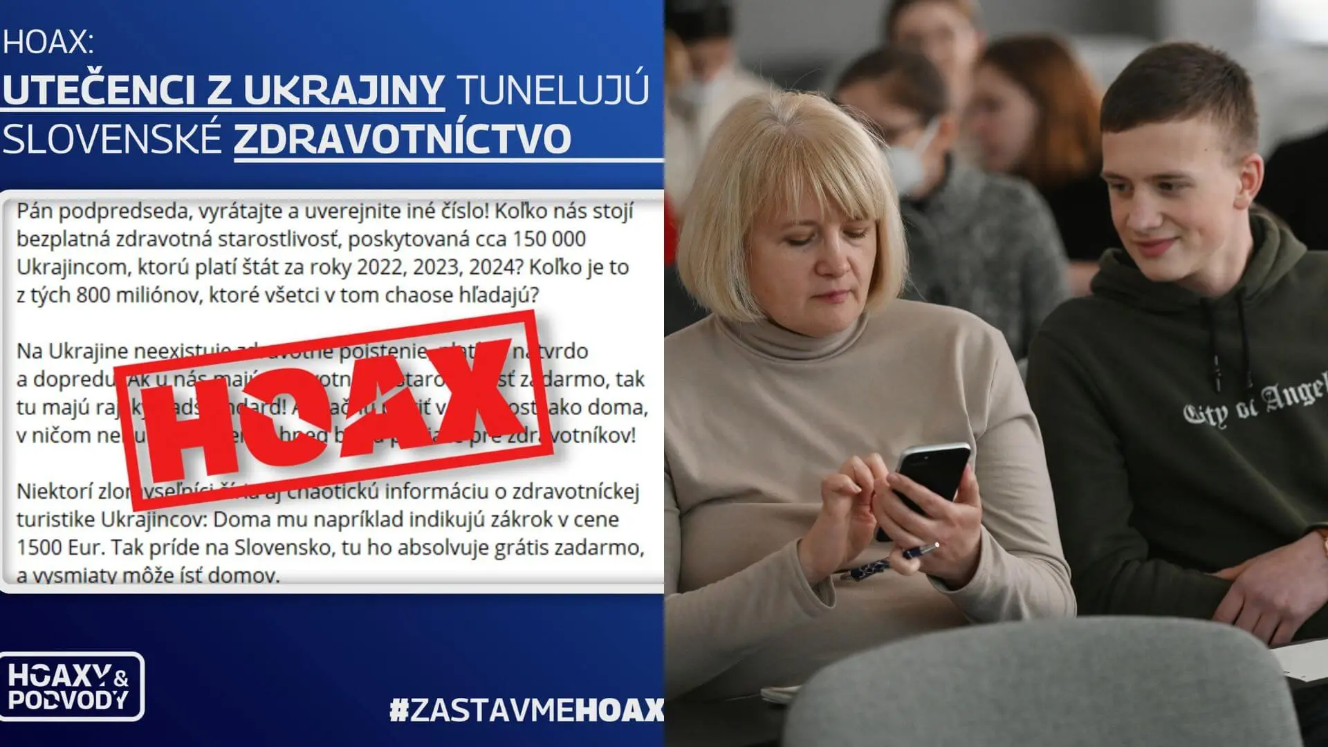 Tieto tvrdenia sú však nepravdivé. Aj napriek tomu ich šíria aj niektorí politici. Správa sa šíri na sociálnych sieťach vo forme klebiet typu „jedna pani povedala“. Zdravotné poisťovne, ktoré oslovil projekt Hoaxy a podvody, potvrdili, že prístup ukrajinských občanov k bezplatnej zdravotnej starostlivosti na Slovensku závisí od typu ich pobytu, čím vyvrátili túto dezinformáciu.