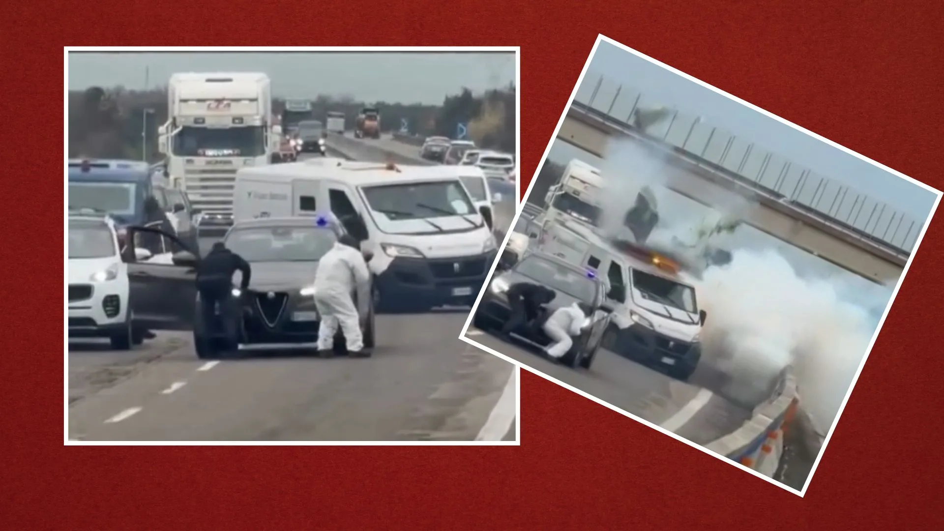 Situácia sa ešte viac vyhrotila po príchode jednotiek Carabinieri, na ktoré útočníci začali strieľať. Premávka na frekventovanej ceste sa v priebehu niekoľkých minút zmenila na vysoko rizikovú zónu. Regionálni policajní predstavitelia následne upozornili, že zasahujúci policajti čelili mimoriadne nebezpečnej a dobre pripravenej akcii, pri ktorej boli priamo ohrození streľbou.