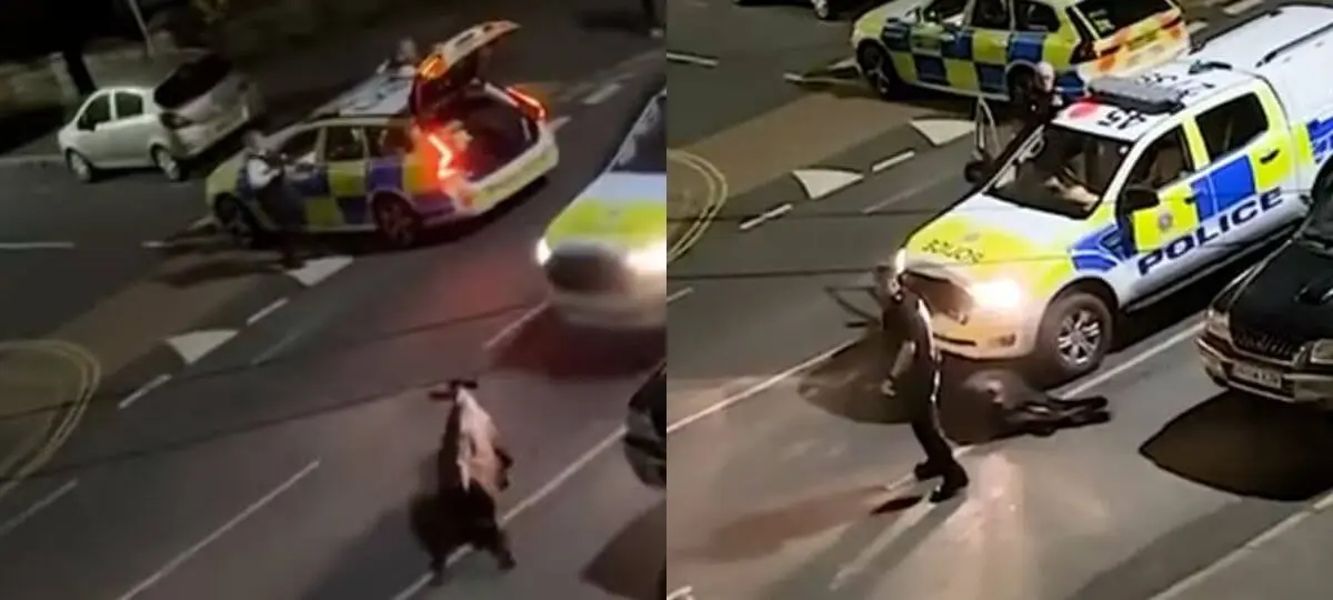 Anglickým grófstvom Surrey otriasol brutálny incident. Obyvatelia mesta Staines-upon-Thames zalarmovali políciu kvôli splašenému teľaťu. Zasahujúci muž zákona však zviera najskôr zámerne zrazil a potom sa ho snažil prejsť. Zábery sadistického počínania obleteli sociálne siete, vedenie polície sa proti jeho konaniu ohradilo s tým, že bol odvolaný zo služby. Informoval o tom web Sky News.